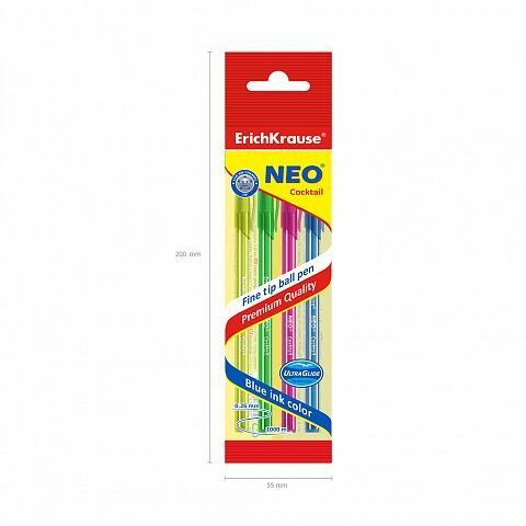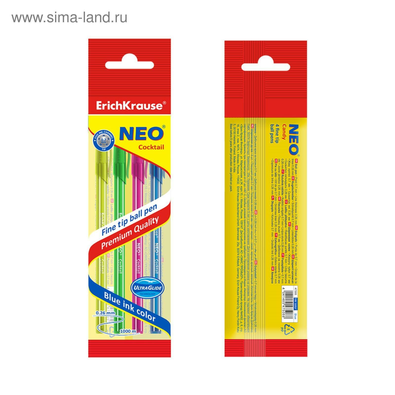 Ручка шариковая ErichKrause Neo Cocktail синяя 4 шт Neo Stick