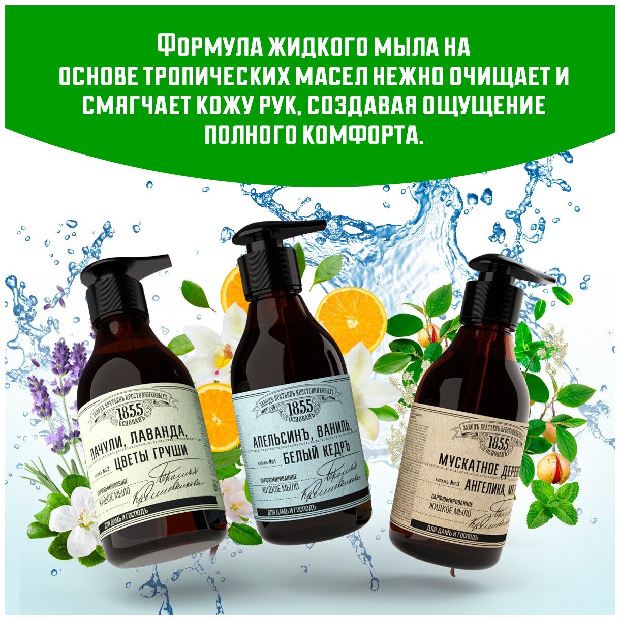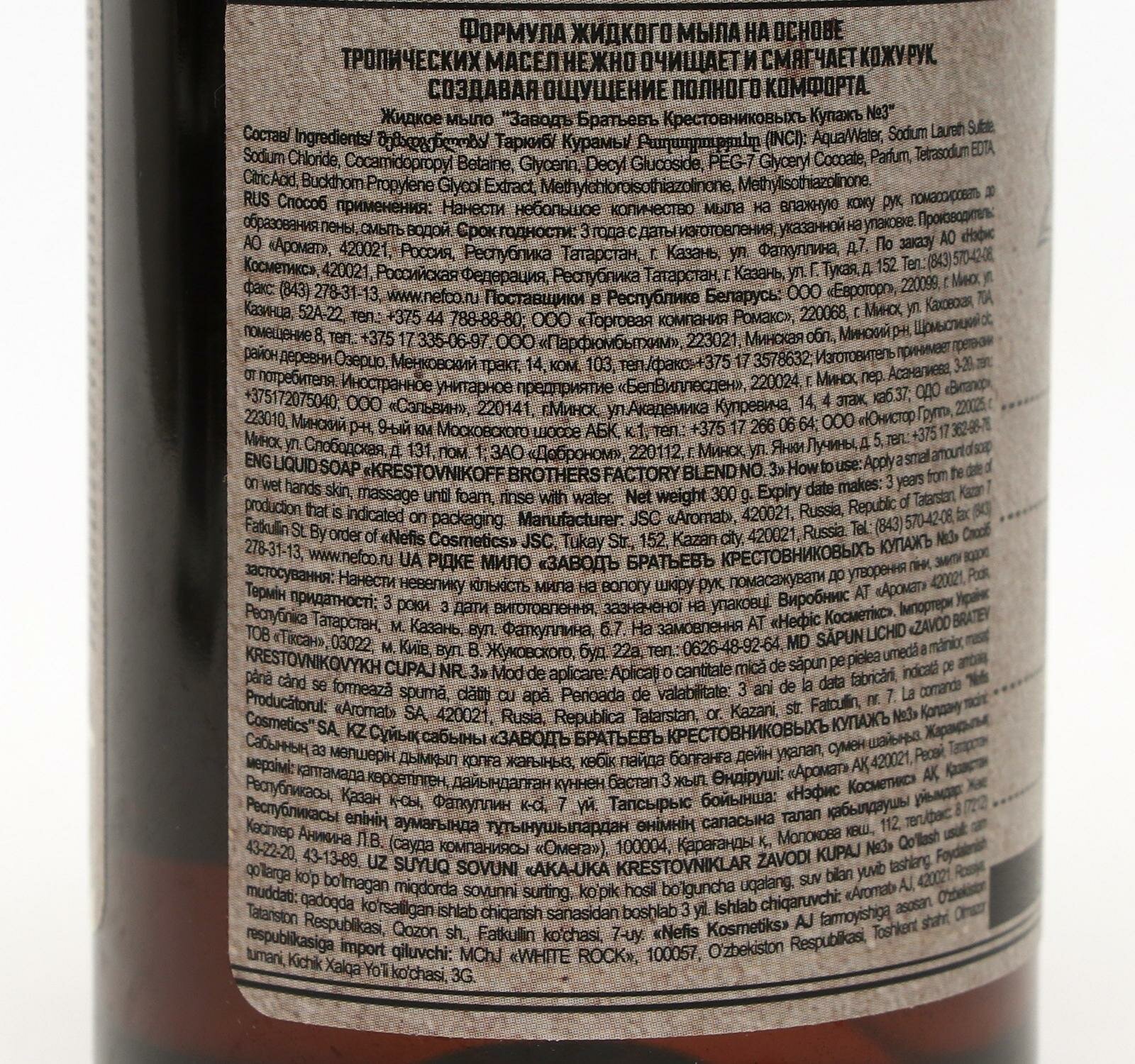 Жидкое мыло Завод братьев Крестовниковых Купажъ 3 мускатное дерево-ангелика-мята 300 мл