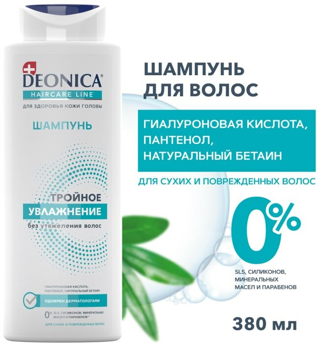 Шампунь для волос Deonica Тройное увлажнение 380 мл