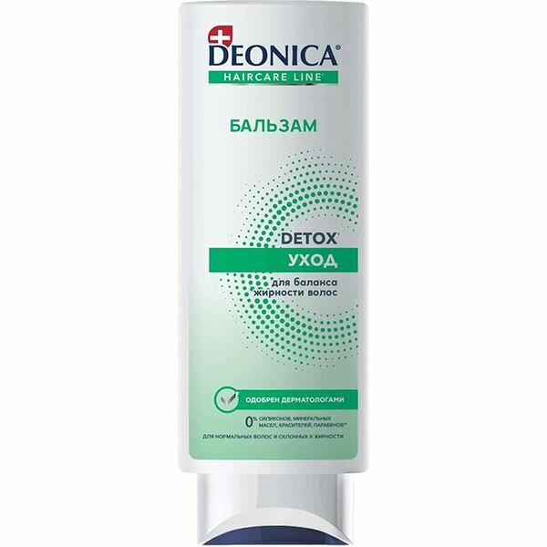 Бальзам Detox-уход от Deonica предназначен для глубокого очищения волос, их увлажнения и оздоровления. В условиях города, стресса, частого применения стайлинговых средств кожа головы и волосы нуждаются в особенном уходе. ШГО и бальзам для волос глубоко проникают в кожу головы и вытягивают загрязнения, удаляя их с пеной. В результате нормализуется жирность кожи головы и волосы требуется реже мыть.