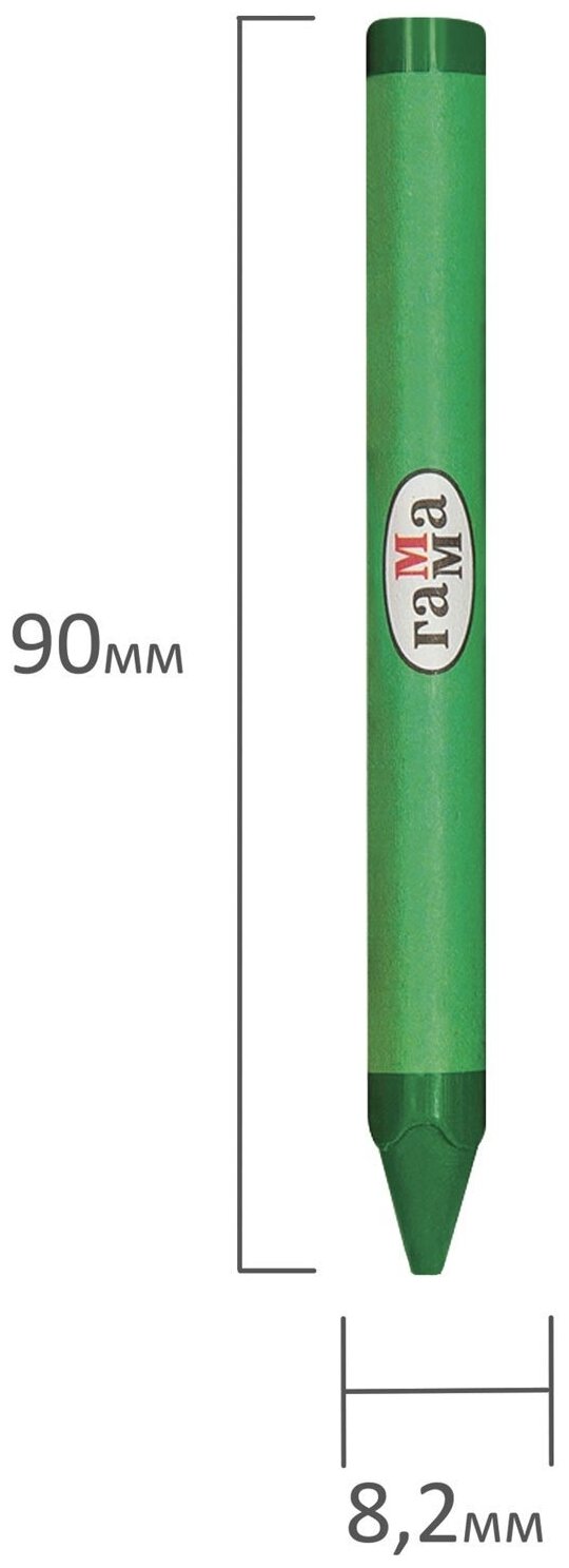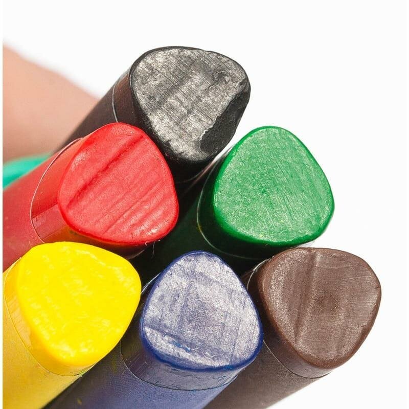 Набор из 6 восковых мелков ГАММА серии Классическая отлично подойдёт для рисования на бумаге, картоне и любой шероховатой поверхности. Мелки имеют эргономичную трёхгранную форму, длина мелка составляет 90 мм, а диаметр корпуса 8 мм. В наборе 6 ярких цветов: жёлтый, зелёный, синий, красный, чёрный, коричневый. Они идеальны для первых начинаний ребенка в рисовании и раскрашивании, так как они удобно лежат в руке. Мелки производятся на основе натуральных растительных компонентов: воска и естественных пищевых красителей. Мелки не пачкают руки, не липнут, не имеют выраженного химического запаха. Каждый мелок обёрнут в бумажную гильзу и уже заточен. Набор упакован в картонную коробку с европодвесом. Количество цветов: 6; Количество штук: 6; Форма: трёхгранная; Длина мелка: 90 мм; Диаметр мелка: 8 мм.