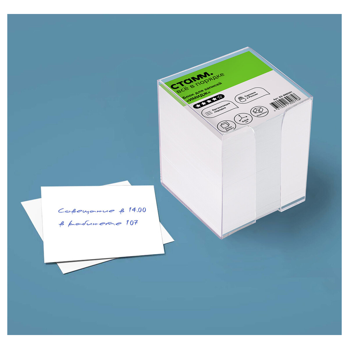 Блок бумаги в пластиковом прозрачном боксе СТАММ Basic подходит для оперативных записей необходимой информации. Размер листа в блоке - 9090 мм, высота блока - 90 мм. Блок для записей представлен в индивидуальной упаковке в термоусадочной пленке. Цвет блока: ассорти Плотность бумаги: 80 г/м.