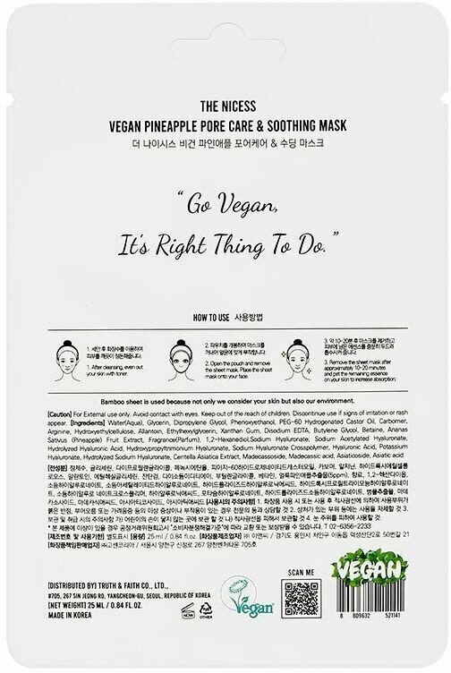 | Состав набора | Маска тканевая для лица The nicess Vegan Разглаживание с ананасом 25 мл |