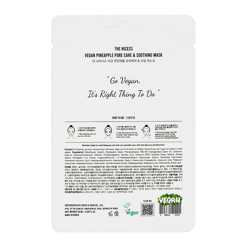 Маска для лица The nicess Vegan разглаживание с ананасом тканевая 25 мл