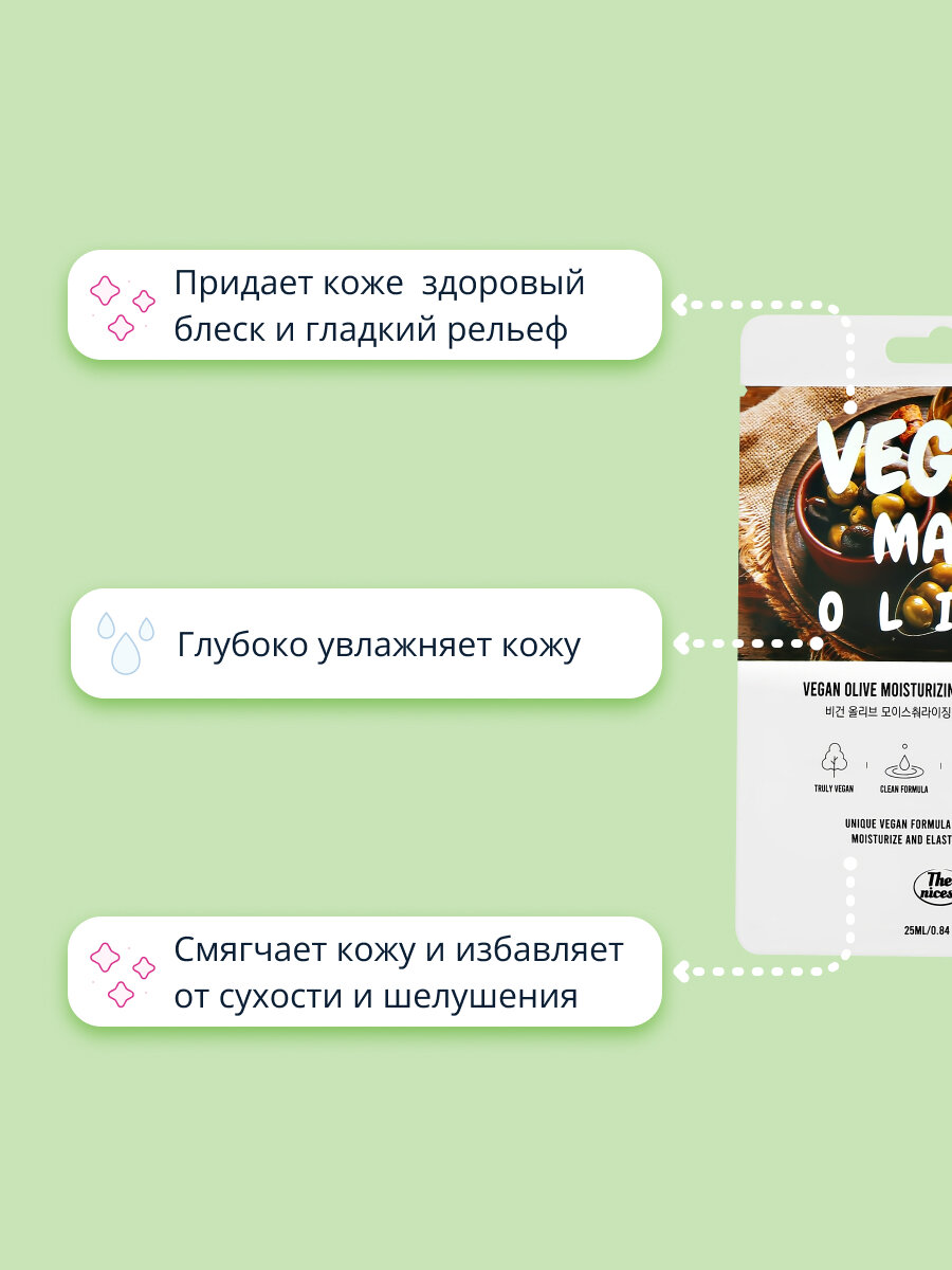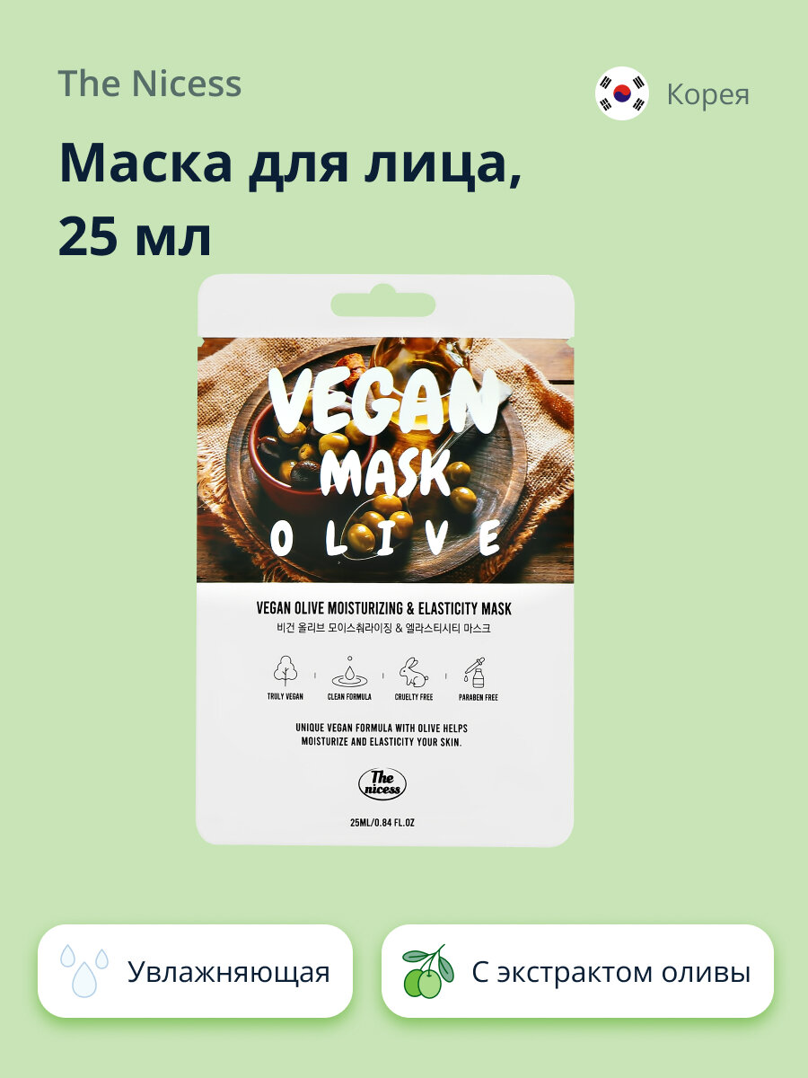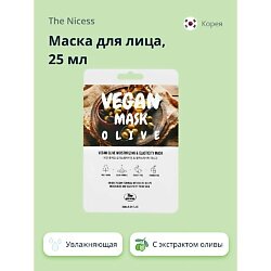 Маска для лица The nicess Vegan увлажнение и эластичность с оливковым маслом тканевая 25 мл