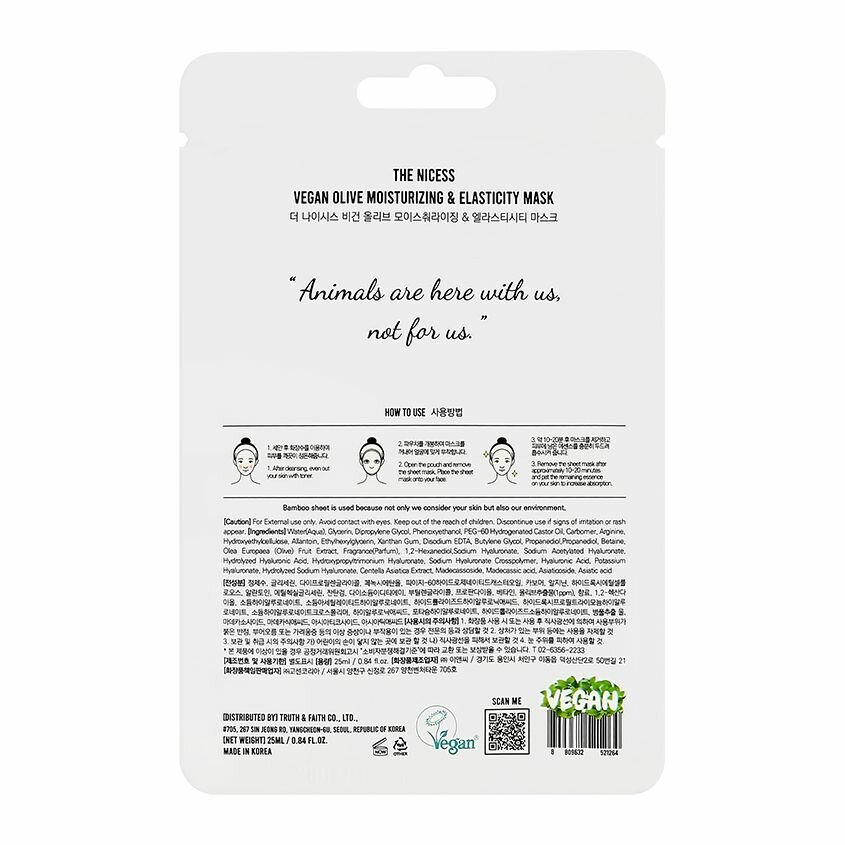 Сервис сравнения цен СкидкаГИД предлагает сравнить цены на товар «Маска для лица The nicess Vegan увлажнение и эластичность с оливковым маслом тканевая 25 мл»
