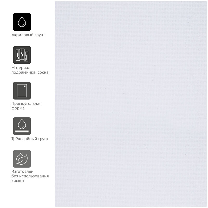 Холст для профессиональных работ из 100% льна высокого качества. Идеальная основа для работы масляными, акриловыми и темперными красками. Трехслойный акриловый грунт сохраняет чистоту цветов и оттенков. Плотность 370 г/м подходит для письма, лессировки, портретов и эскизов. Модульный подрамник выполнен из натуральной сосны, клинья для натяжки холста в комплекте.