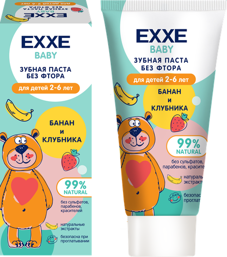 Зубная паста детская EXXE Hello банан клубника 2+ 50 мл