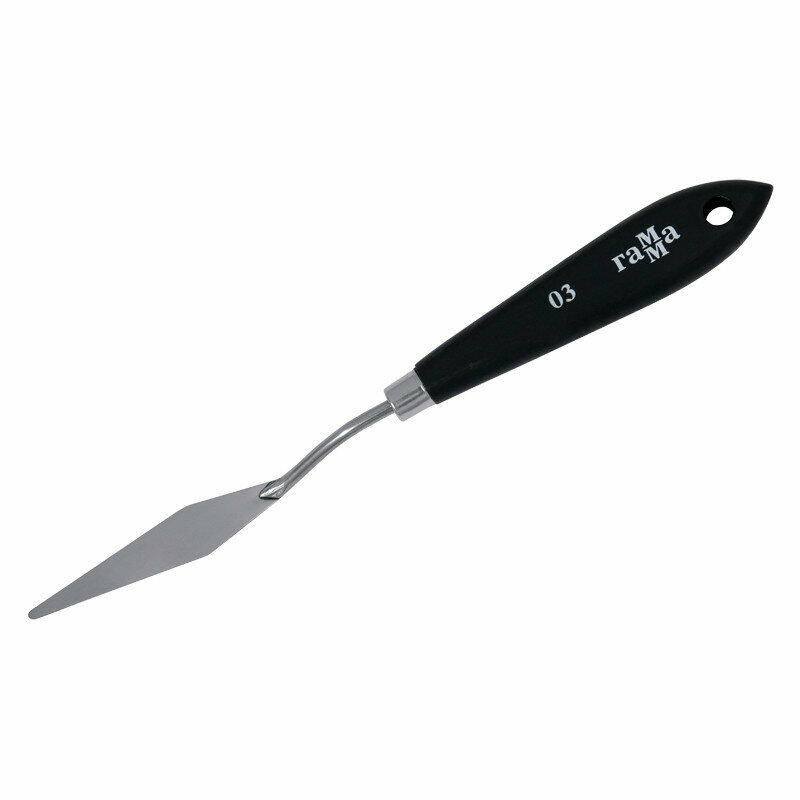 Паяный мастихин из нержавеющей стали с удобной плоской ручкой из натурального бука. Сварное соединение ручки и лезвия дает больший угол наклона мастихина к холсту, снижая вероятность случайного касания и смазывания краски. Форма лезвия ромб.