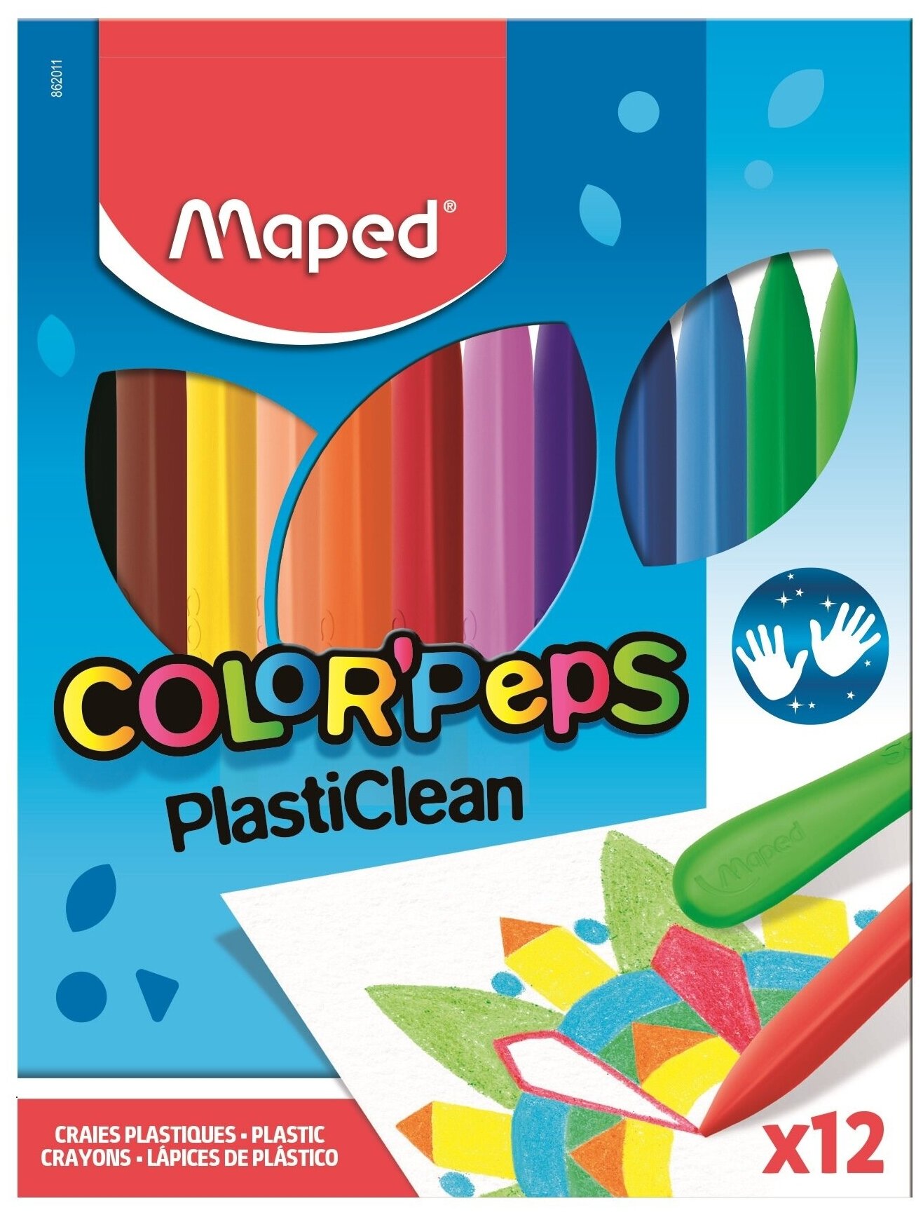 Всемирно известный французский производитель канцелярских принадлежностей для офиса, школы и дома тм MAPED представляет серию пластиковых мелков ColorPeps PlasiClean. Пластиковые мелки предназначены для создания рисунков и раскрашивания. Один конец плоский - удобно закрашивать детали рисунка, другой острый - для прорисовки линий и контуров. Руки всегда остаются чистыми. Легко затачивать обычными точилками. Длительный срок службы: в 3 раза дольше рисуют, чем обычные мелки. Яркие и насыщенные цвета без дополнительных усилий. В наборе 12 классических мелков ярких, насыщенных цветов.