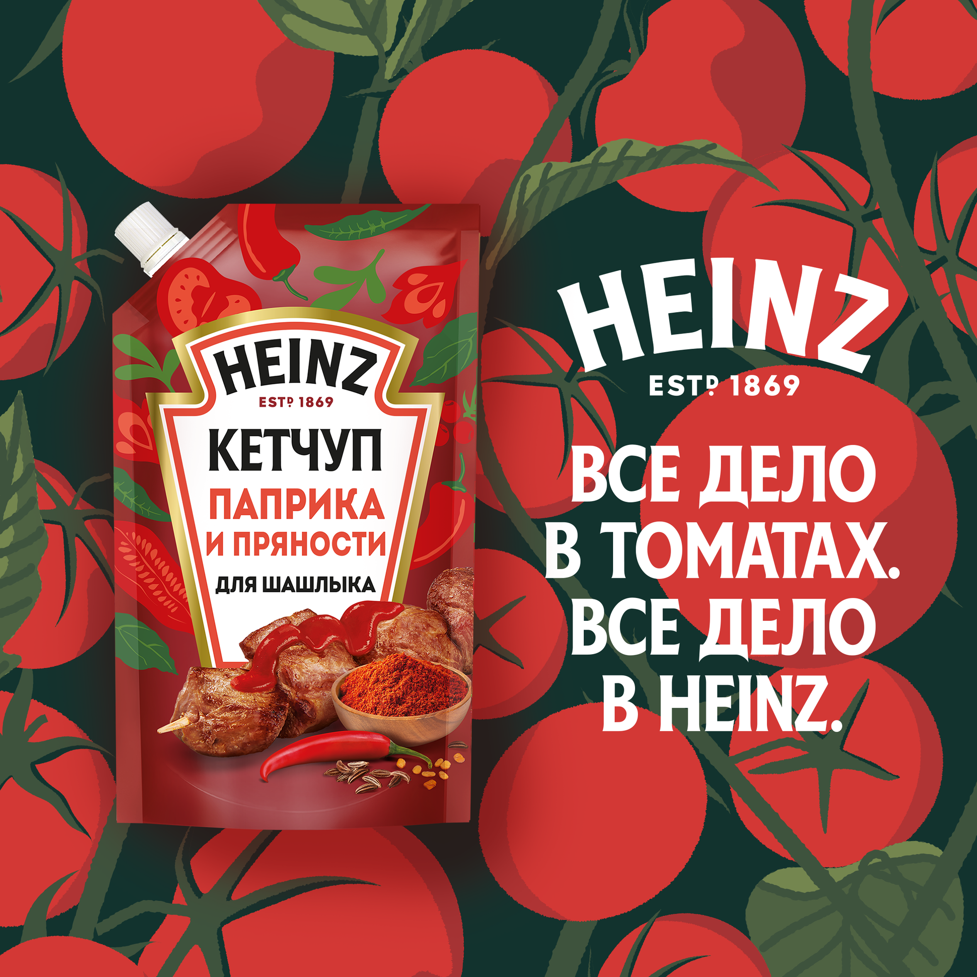 К отборной томатной пасте Heinz добавляет фирменную смесь специй, несколько дополнительных ингредиентов и, конечно же, свою любовь. Heinz - все дело в томатах.