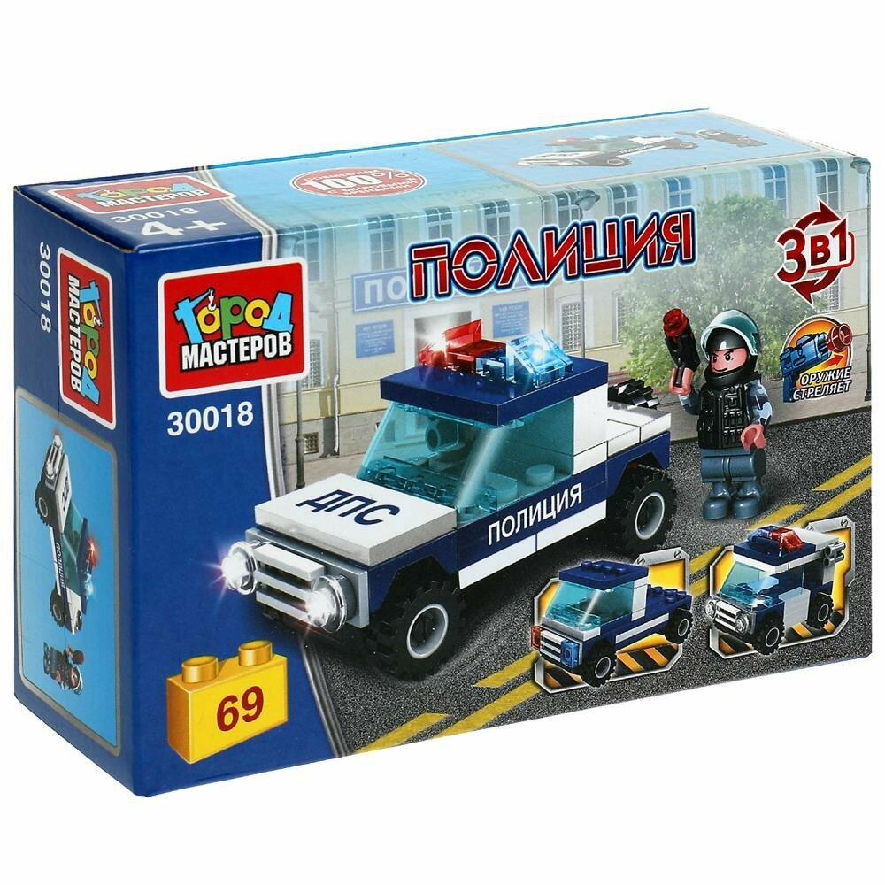 Конструктор Город мастеров полицейская машина 3в1 69 деталей