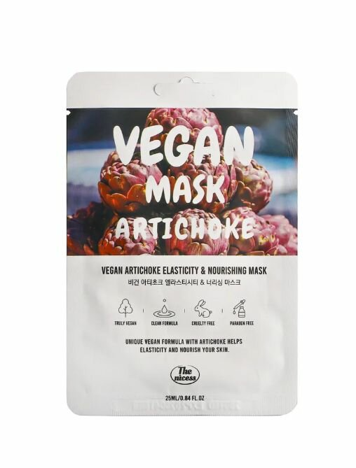 Маска для лица The nicess Vegan упругость и питание с артишоком тканевая 25 мл