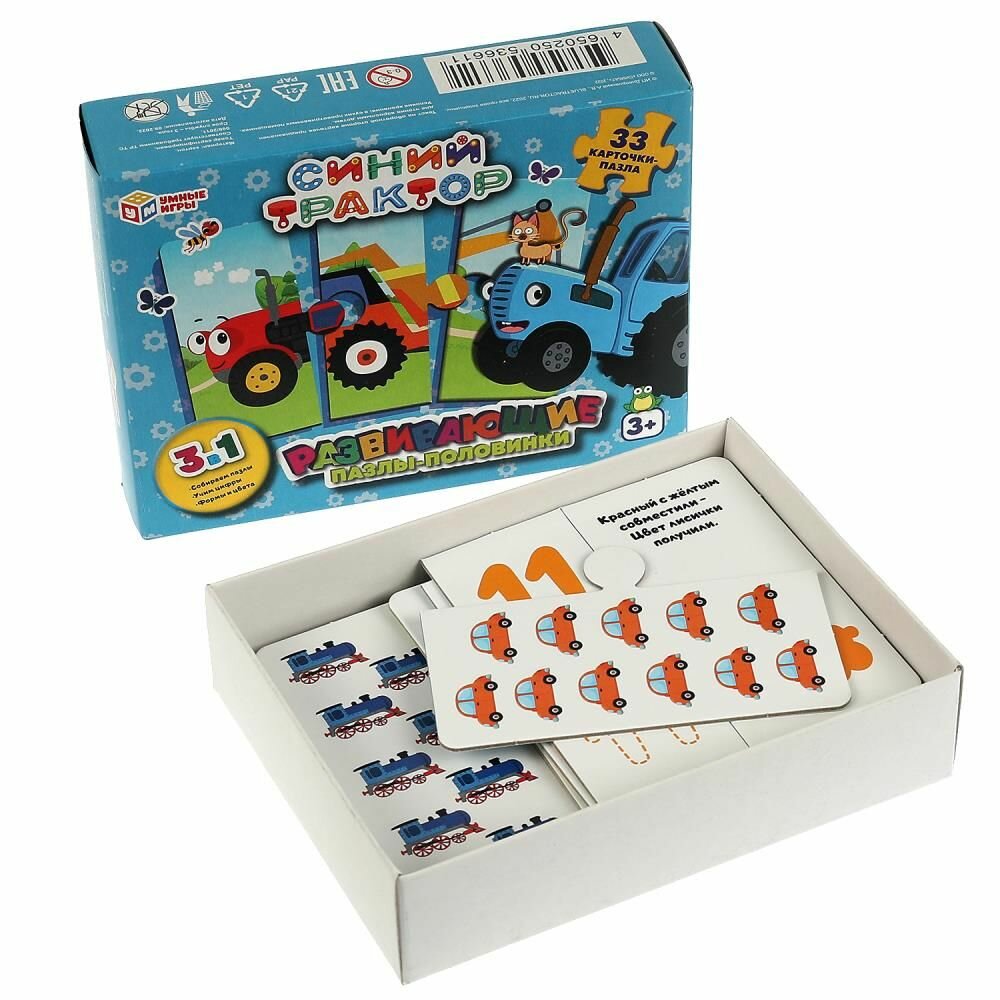 Развивающие пазлы-половинки Умные игры Синий Трактор 3в1