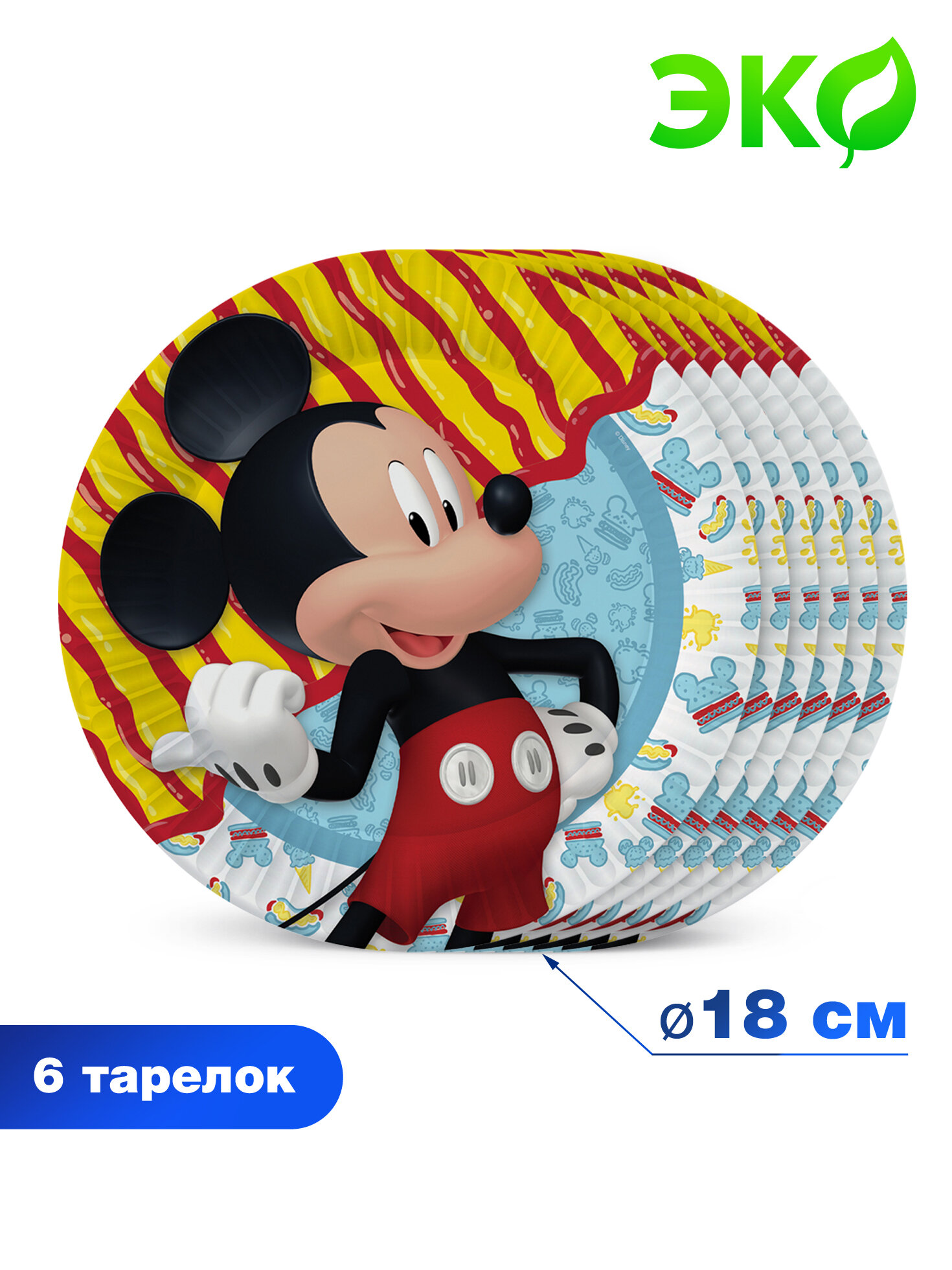 Набор одноразовых тарелок Disney Mickeyminn d 180 мм 6 шт
