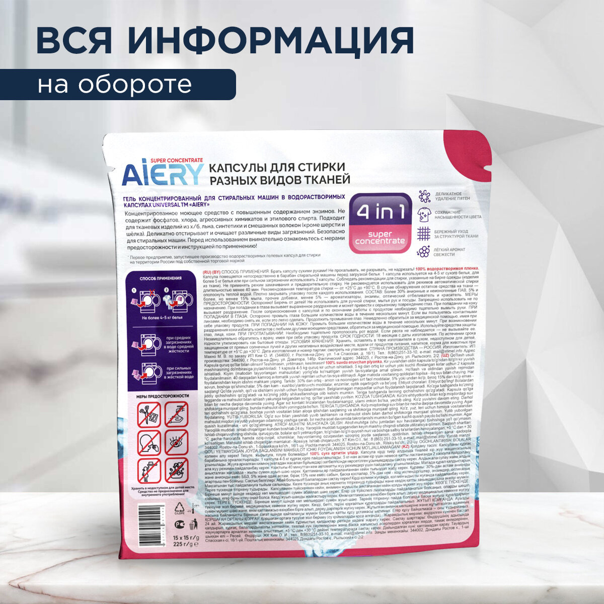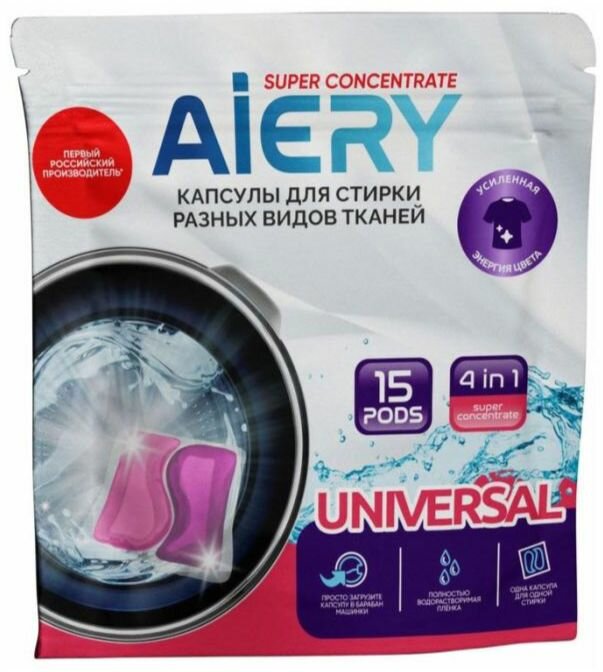 Капсулы для стирки Aiery Universal 4 в 1 15 шт