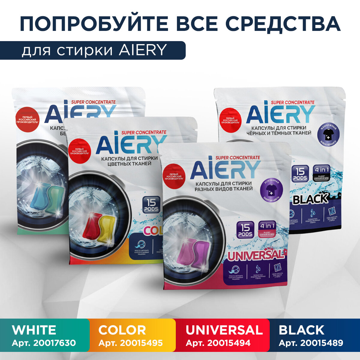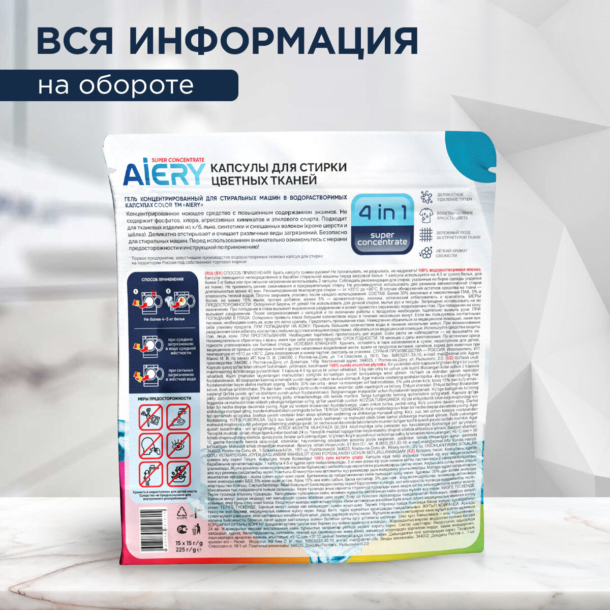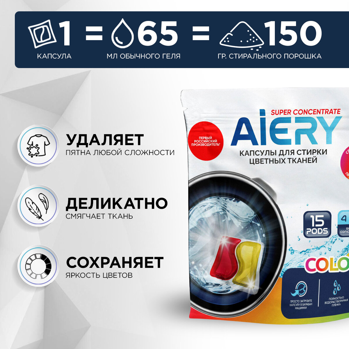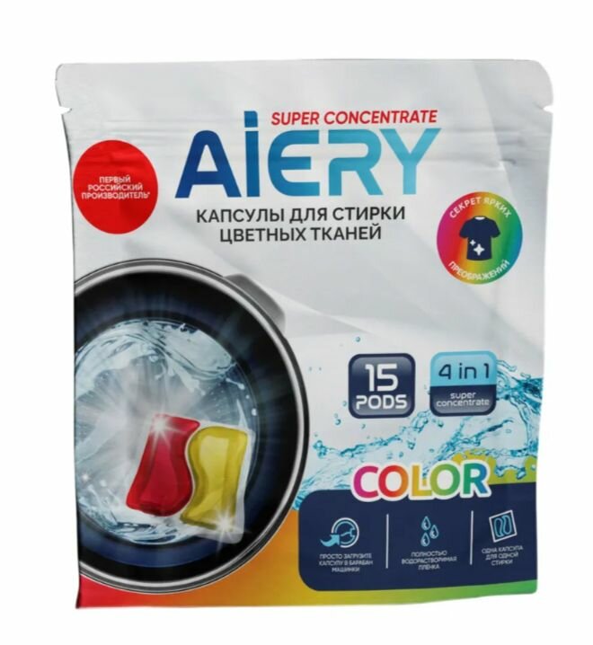 Капсулы для стирки Aiery Color 4 в 1 15 шт