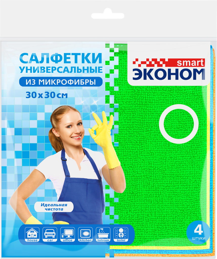 Салфетки Эконом smart из микрофибры 30х30 см 4 шт