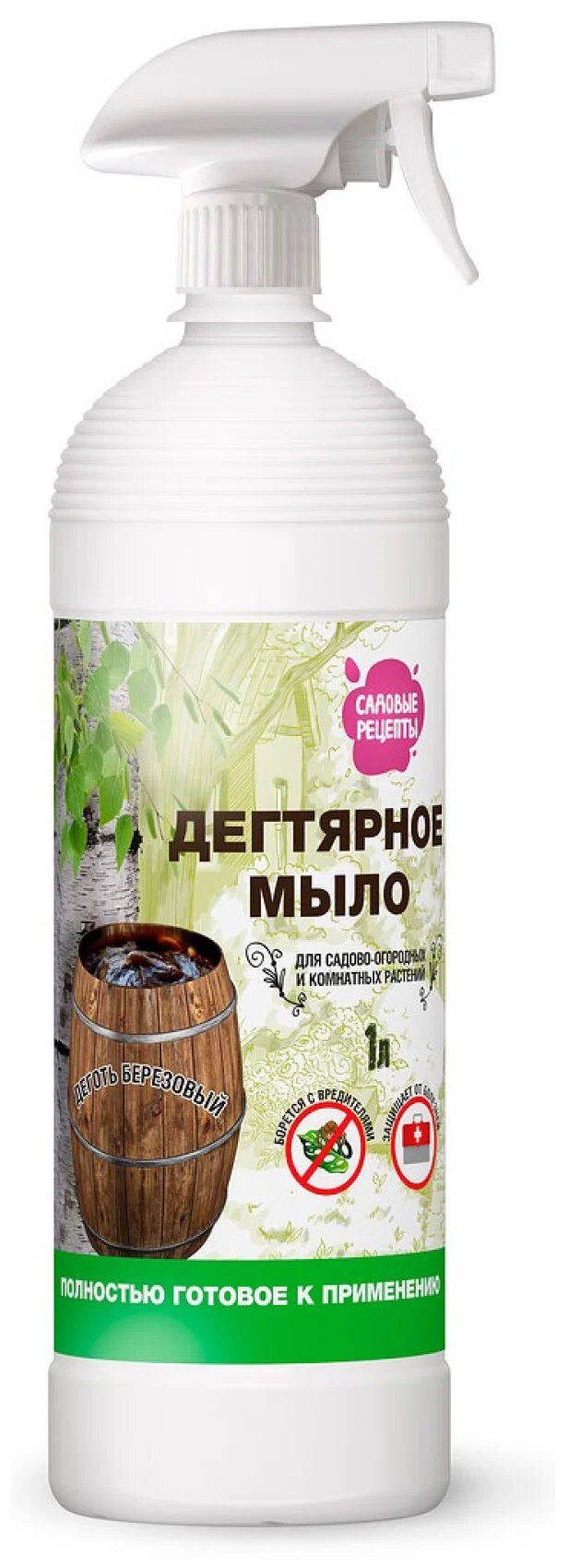 Дегтярное мыло полностью готовое к применению содержит березовый деготь 1л борется с вредителями, для профилактики и защиты от насекомых-вредителей и болезней растений.
