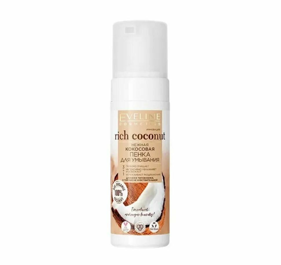 Нежная кокосовая пенка для умывания 3 в 1 Eveline Rich Coconut 150 мл Еveline