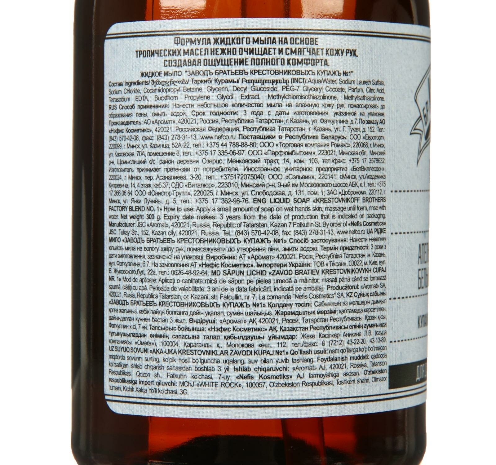 Мыло жидкое Завод братьев Крестовниковых купажъ 1 300 мл