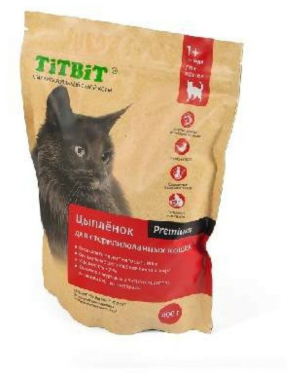 Сервис сравнения цен СкидкаГИД предлагает сравнить цены на товар «Сухой корм для стерилизованных кошек TiTBiT с мясом цыпленка 400 г»