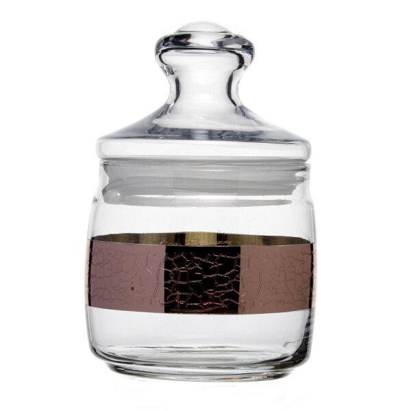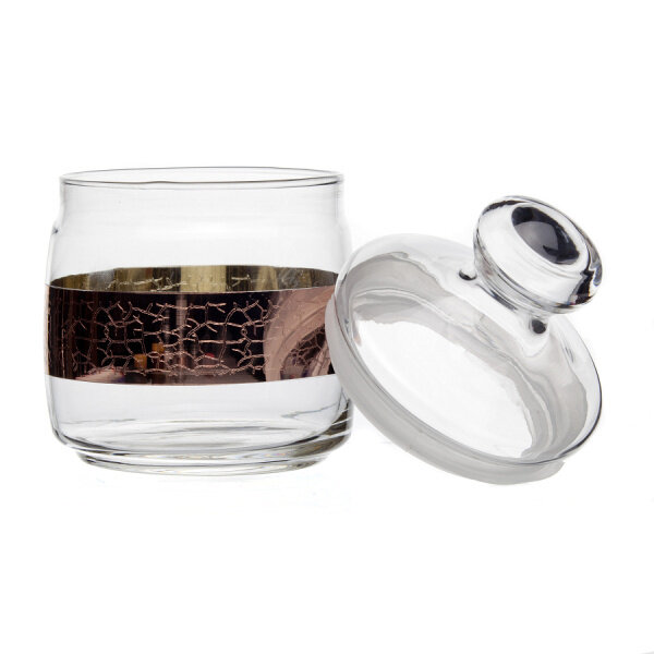 Банка стеклянная декорированная объем 600 мл. Предназначена для хранения сыпучих продуктов.