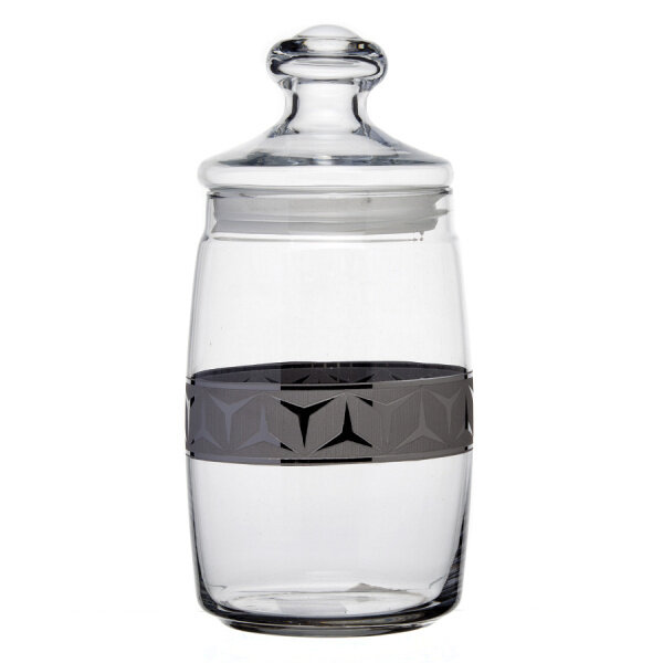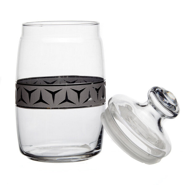 Банка стеклянная декорированная объем 1110 мл. Предназначена для хранения сыпучих продуктов.