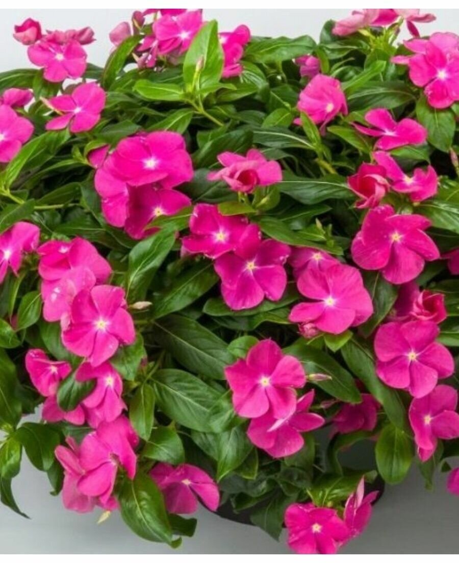 Эффектное ампельное растение! Длина побегов 50-70 см. Обильноцветущие кустики высотой 10-15 см. Листья тёмно-зелёные, овальные. Цветки крупные, диаметром 3-5 см. Окраска - розовая с белым глазком. Используют для украшения балконов, лоджий, в подвесных корзинах, кашпо.