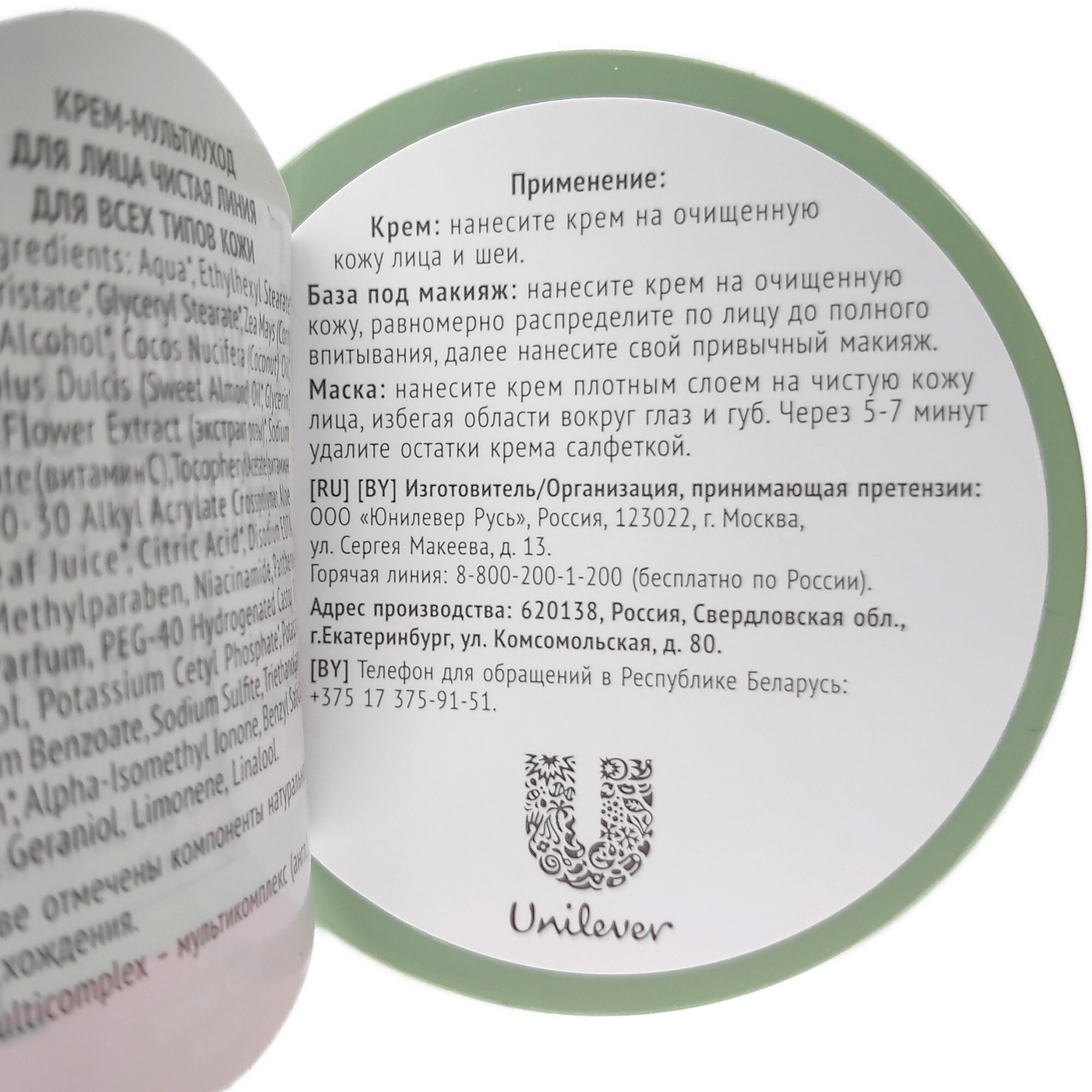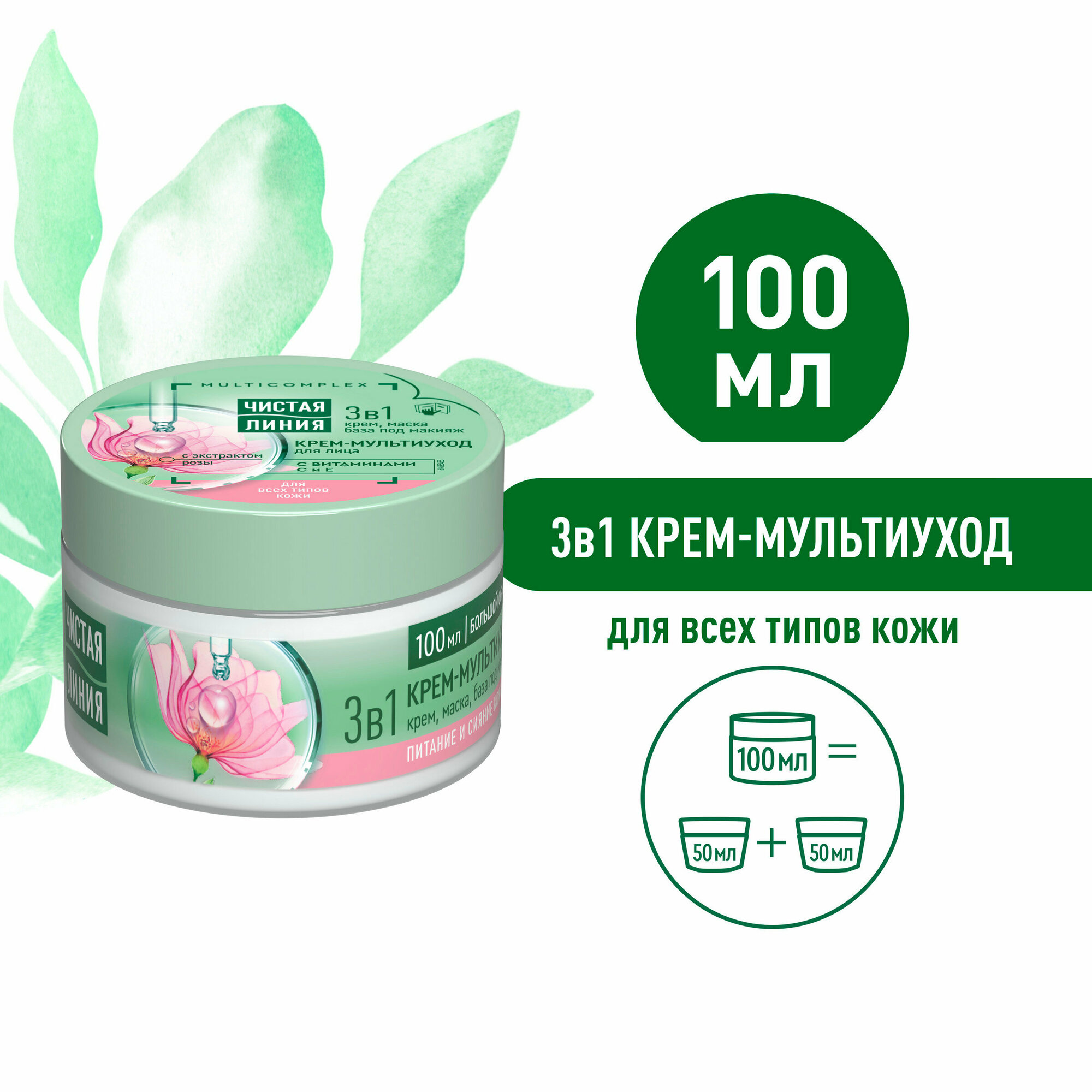 Крем-мультиуход для лица Чистая Линия с экстрактом розы и витаминами C и E 100 мл