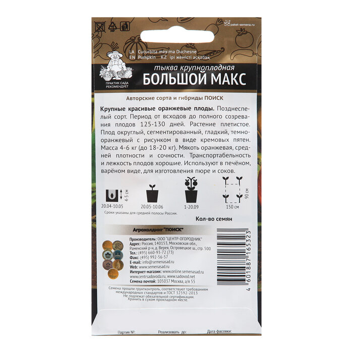 Семена Тыква Поиск Большой Макс крупноплодная 10 шт