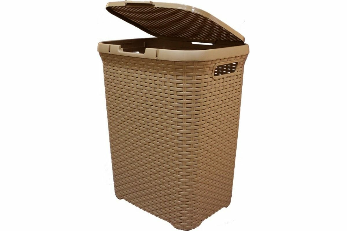Корзина для белья Полимербыт изготовлена из пластика с эффектом плетения. Оснащена двумя ручками для удобной переноски и откидной крышкой. Корзина легкая и надежная, гладкая и изящная, с вентиляционными отверстиями в стенках. Пластиковая корзина - идеальный вариант для влажного помещения, они не подвержены плесени, деформации, коррозии. Прекрасно подходит для хранения тонких, дорогих вещей, так как не оставляет зацепок, которые могут безнадежно испортить вещь.