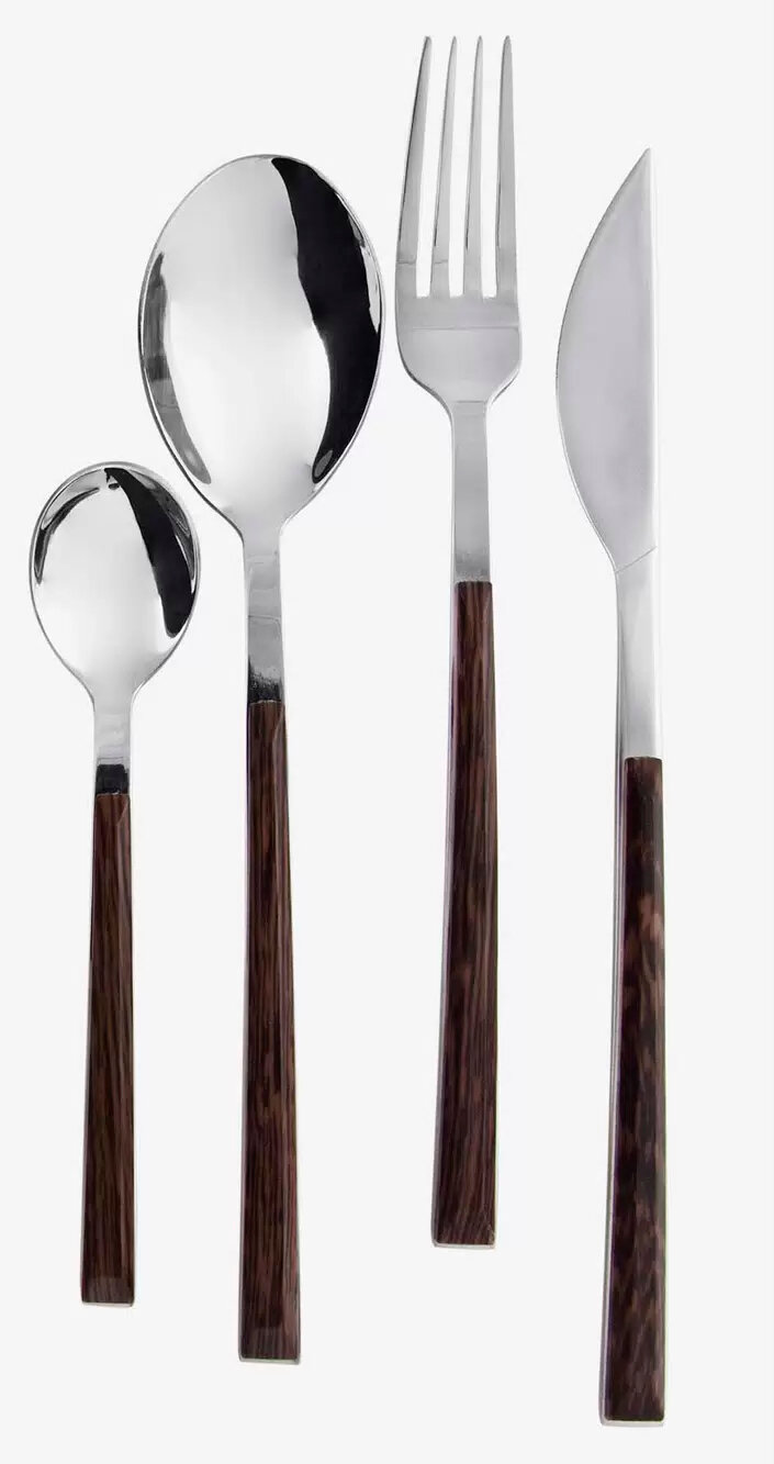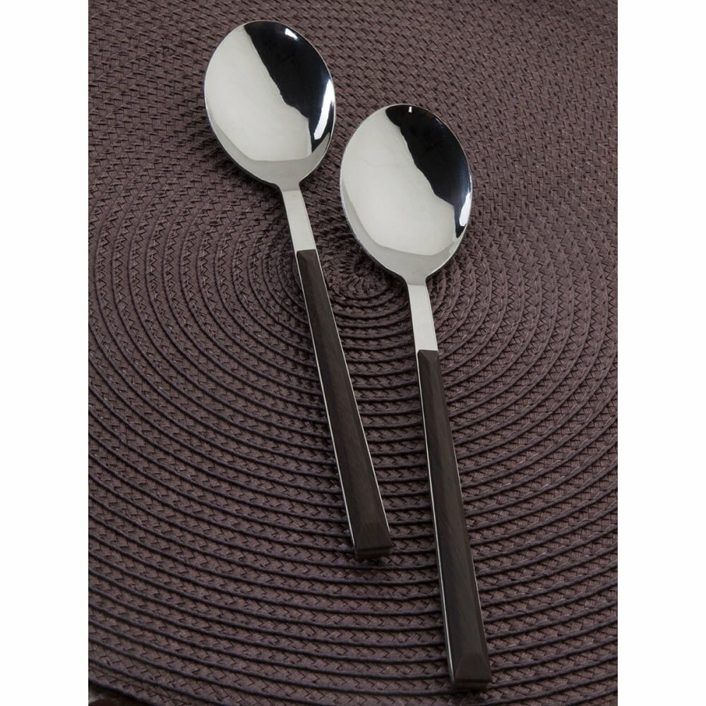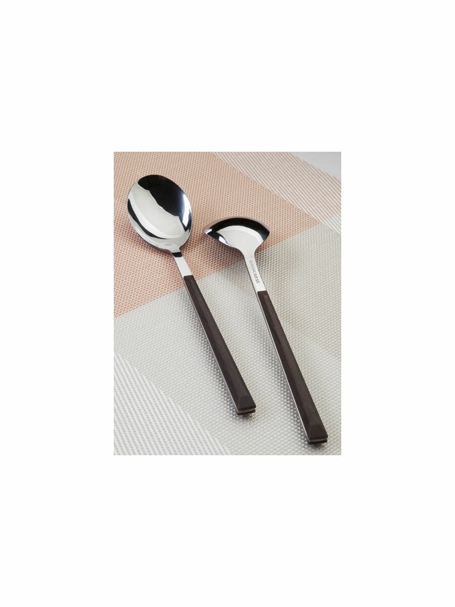 Столовые приборы изящной формы с пластиковыми вставками на ручке цвета дерева венге.