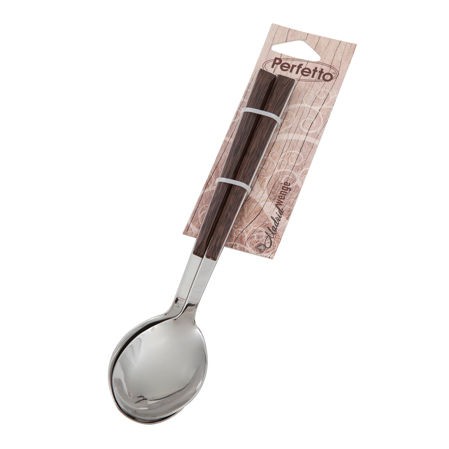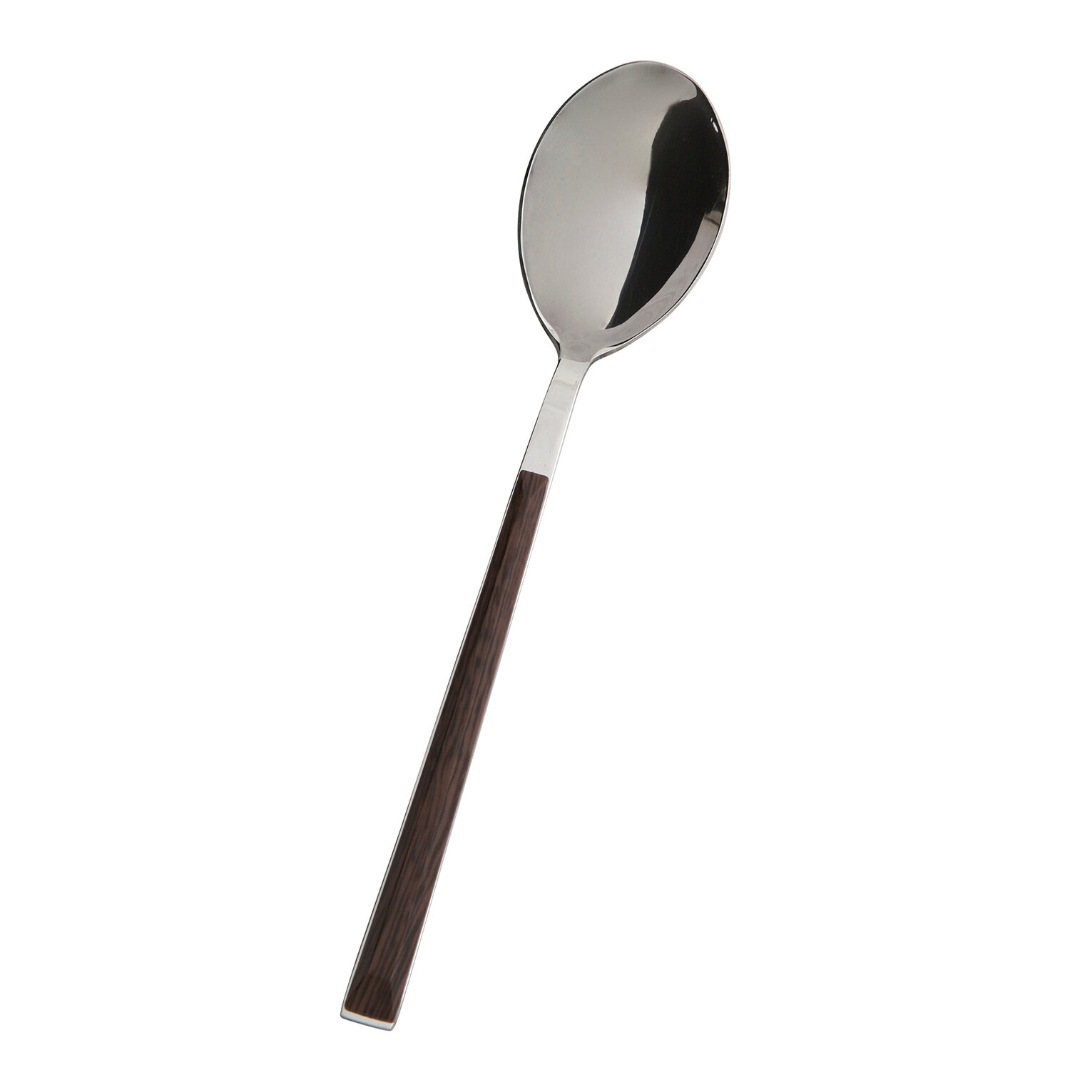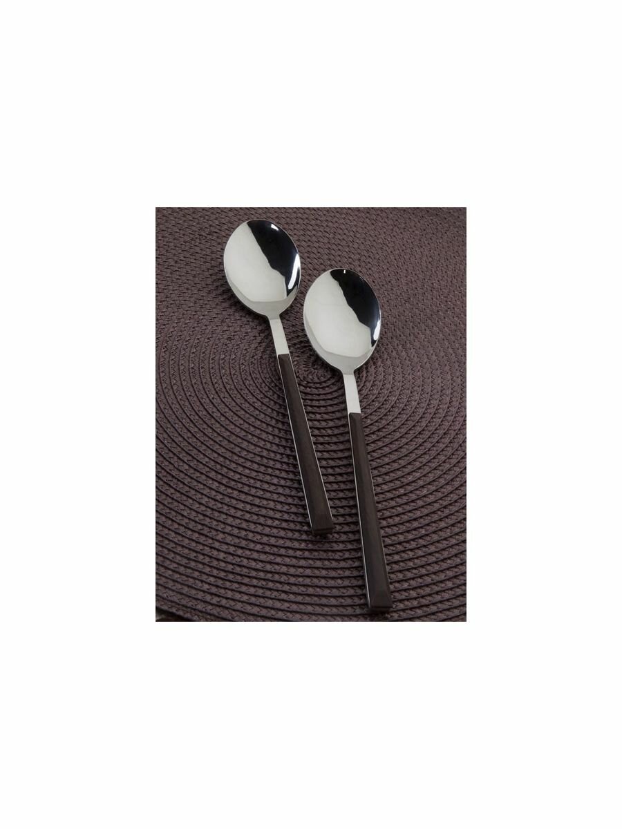 Столовые приборы изящной формы с пластиковыми вставками на ручке цвета дерева венге.