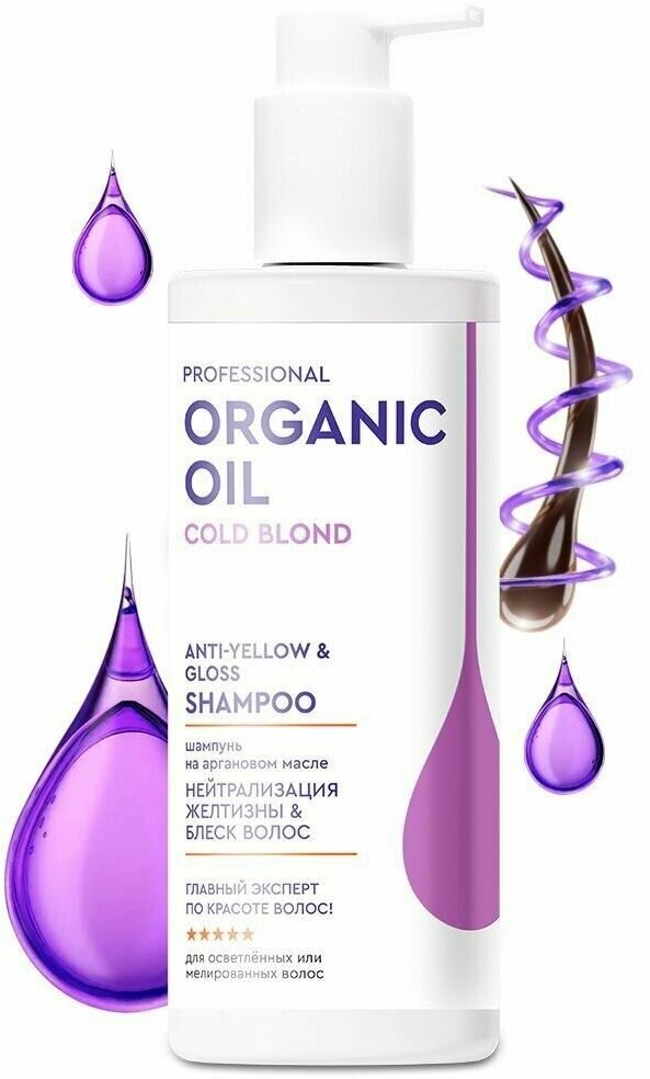 Шампунь для волос Organic Oil Professional Нейтрализация желтизны блеск волос на аргановом масле 240 мл