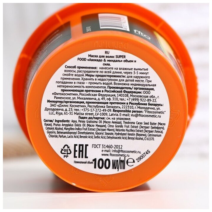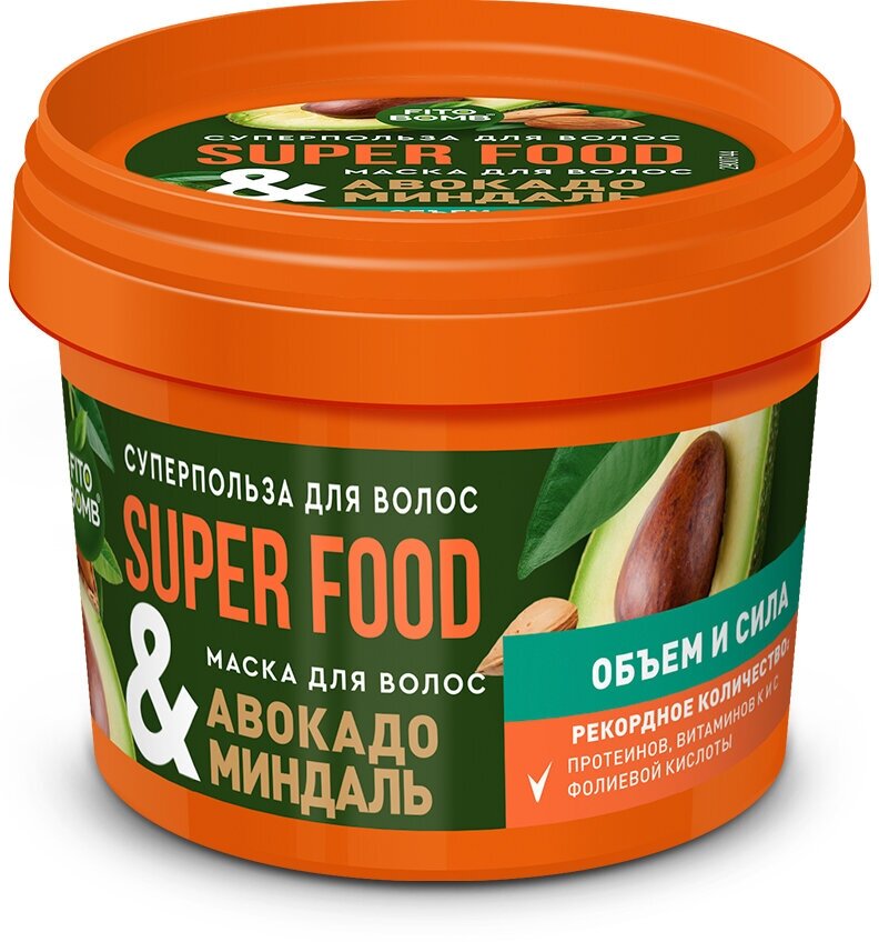 Маска для волос Фитокосметик Super Food Объем и сила авокадо миндаль 100 мл
