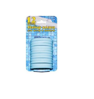 Набор из 12 пластиковых колец для крепления шторки для ванной комнаты на карниз. Кольца имеют продолговатую форму и вставляются в люверсы шторки.