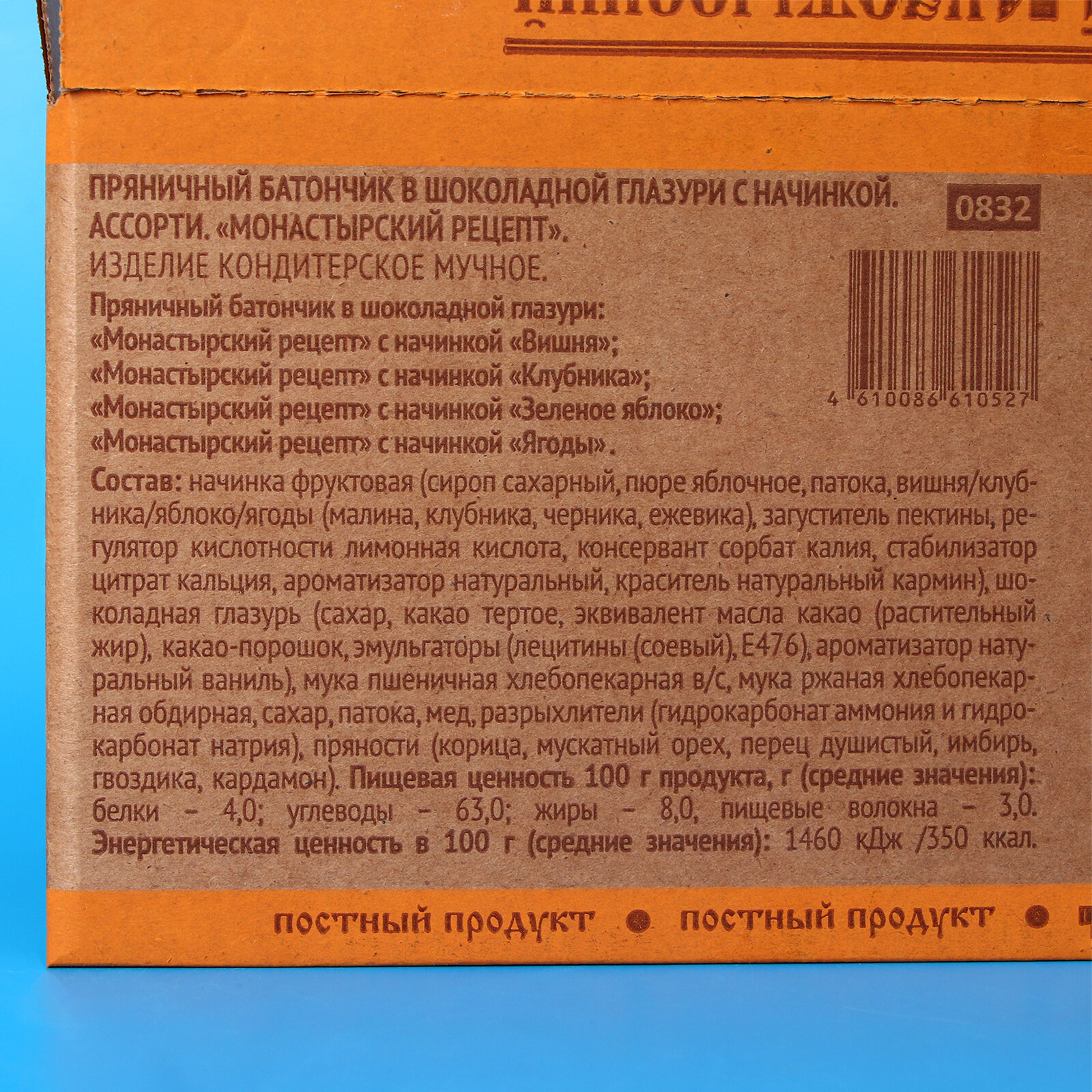 Батончик пряничный Монастырский рецепт с шоколадной глазурью ассорти 40 г