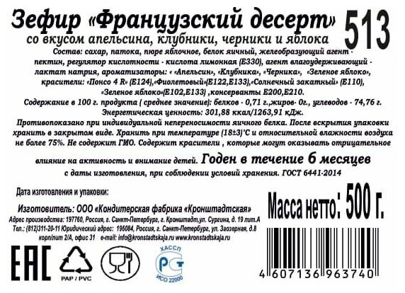 Зефир КФ Кронштадтская Французский десерт 500 г