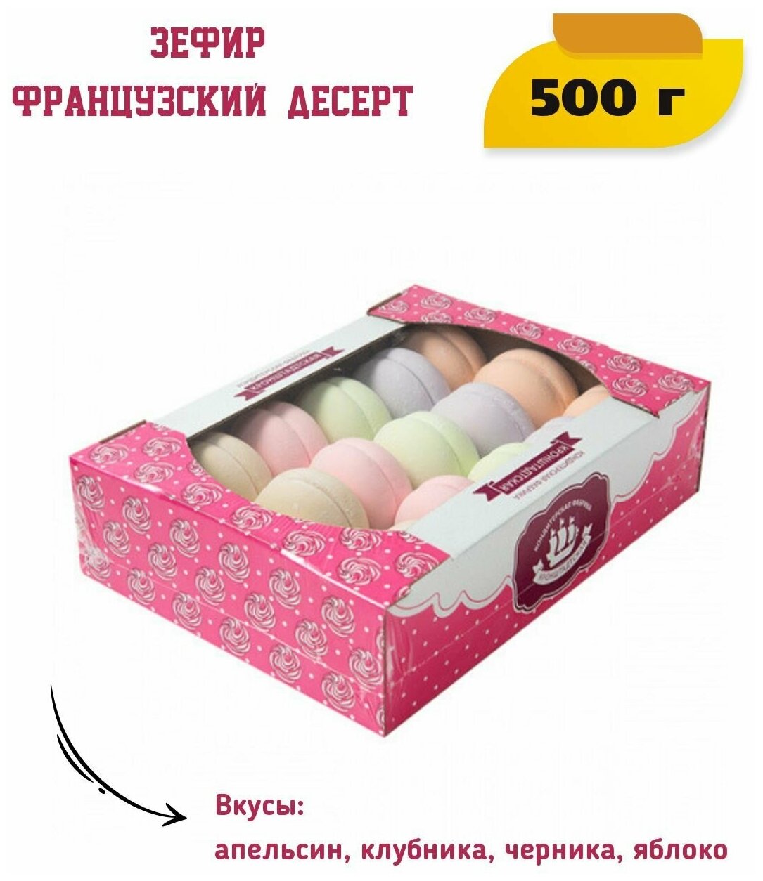 Зефир "Французский десерт" - популярный вкусный зефир со вкусом яблока, клубники, черники и апельсина. Идеально подойдет для чаепития в кругу семьи и друзей!