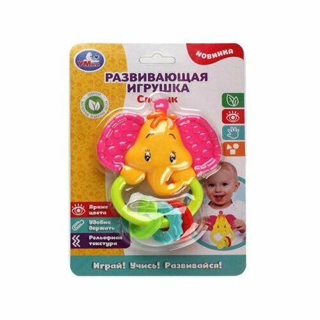 Развивающая игрушка Слоник ТМ УМка разработана специально для малышей: удобно держать, яркие цвета, рельефная текстура, одобрено Институтом Педиатрии России. Игрушка выполнена из окрашенного в красочные цвета, прочного и гипоаллергенного материала. Симпатичный дизайн и хватательные рельефные элементы привлекут внимание ребенка, который с удовольствием будет играть с такой яркой игрушками. Игрушки ТМ УМка развивают: зрительное восприятие, тактильные ощущения, мелкую моторику рук, координацию движений, внимание, цветовосприятие.