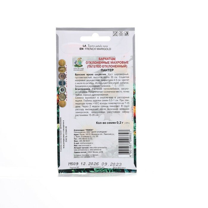 На сегодняшний день товар «Семена Бархатцы Поиск Пантер 02 г» можно купить с кешбеком в 1 магазине: Яндекс.Маркет