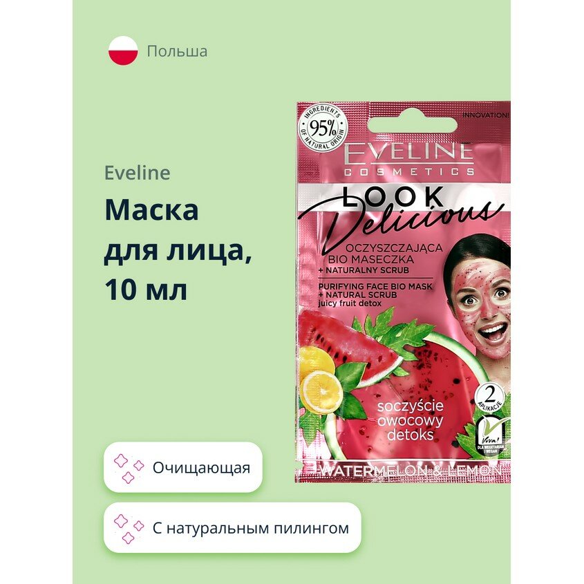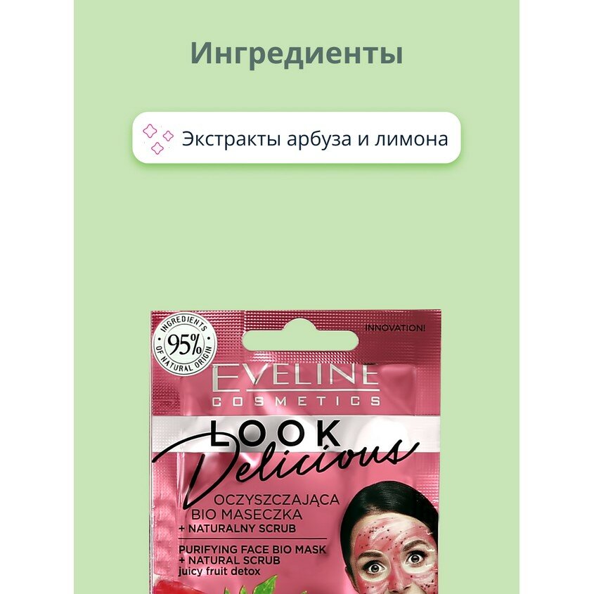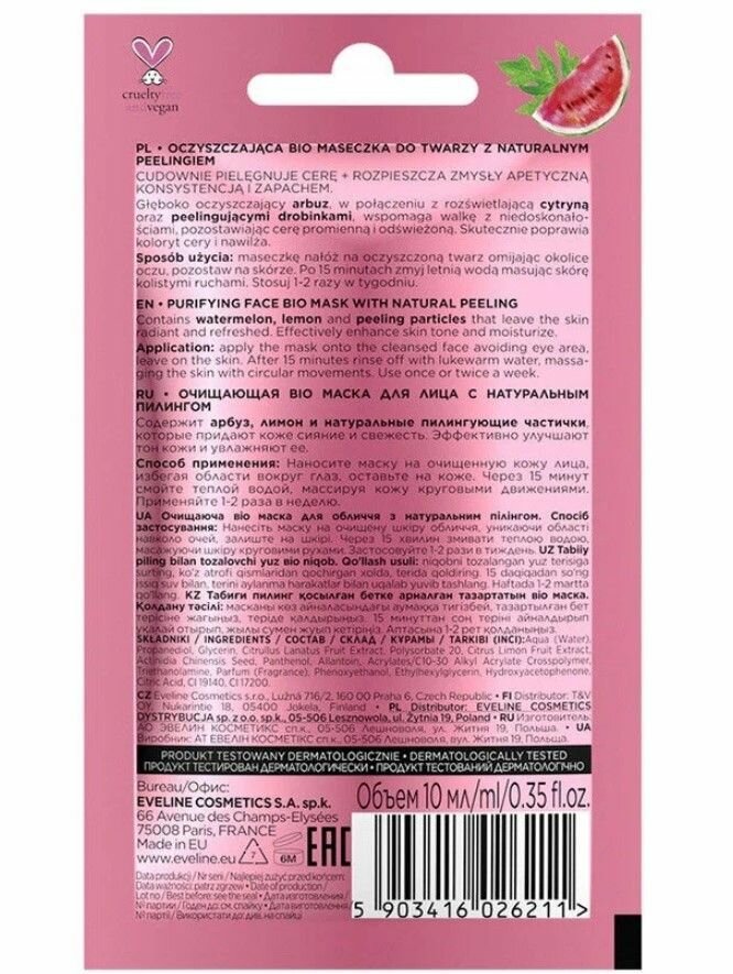 Очищающая bio маска со скрабом watermelon&lemon серии look delicious Eveline 10 мл Еveline