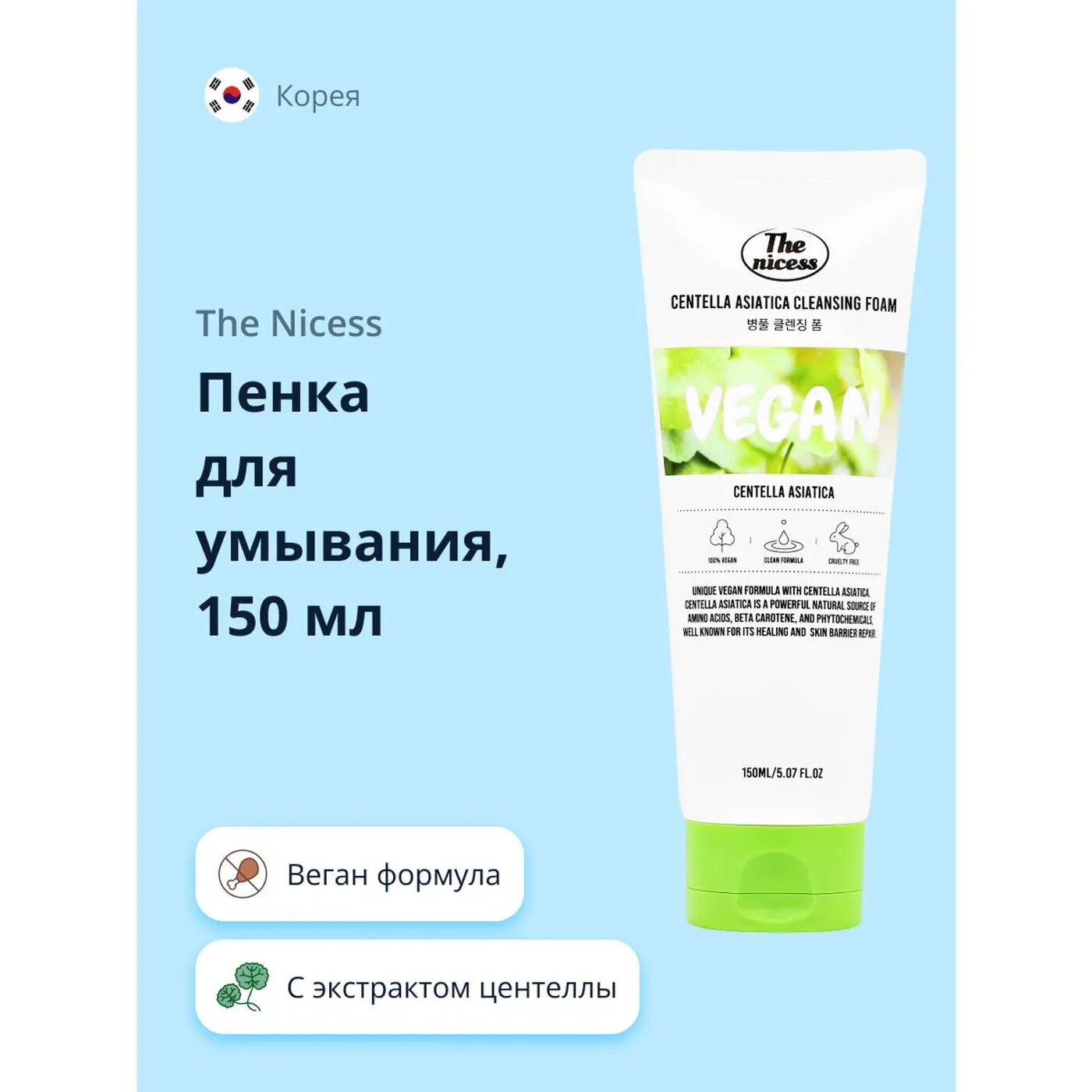 | Состав набора | Пенка для лица The nicess Vegan Очищающая с экстрактом центеллы азиатской, 150 мл |