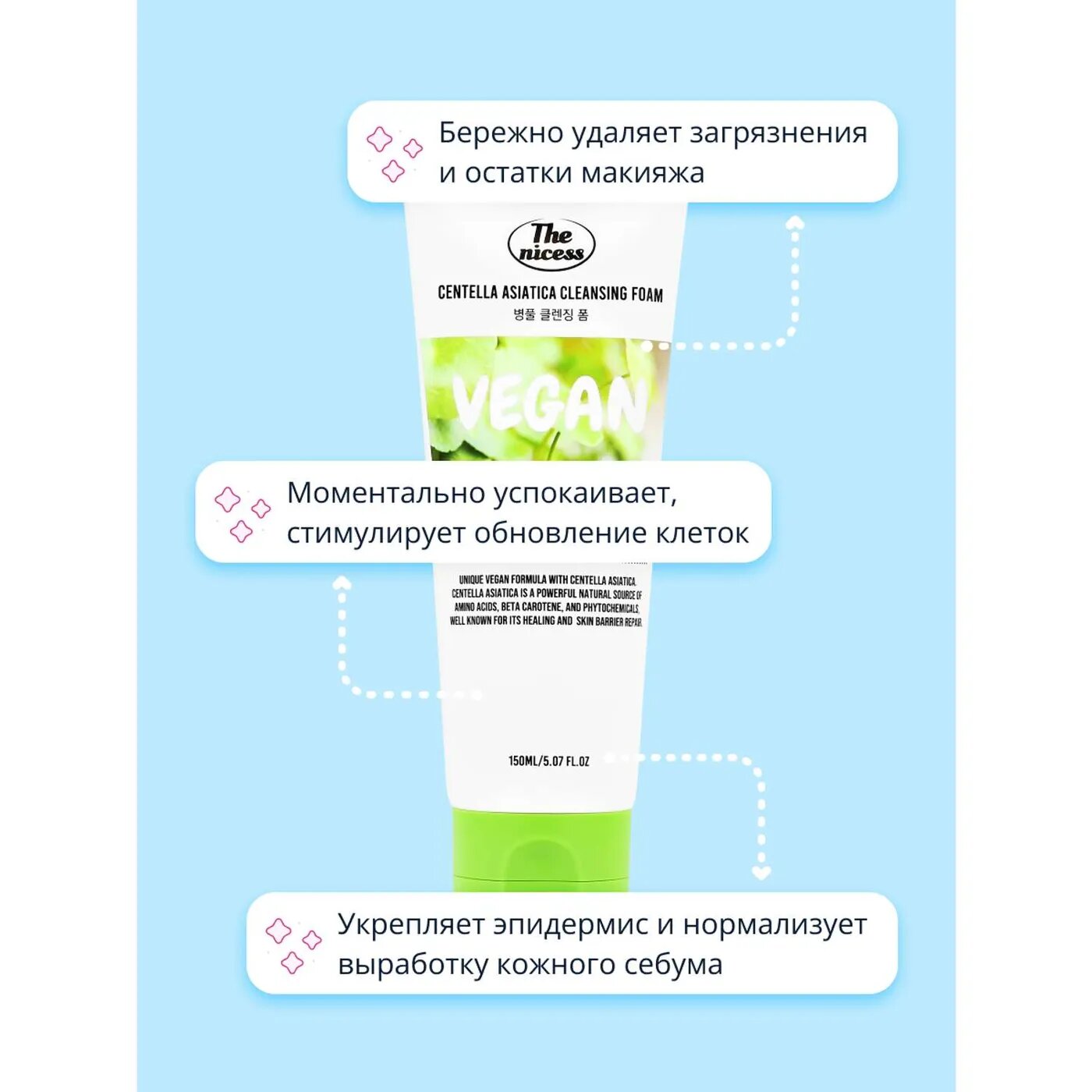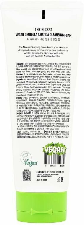 Пенка для лица The nicess Vegan Очищающая с экстрактом центеллы Азиатской 150 мл