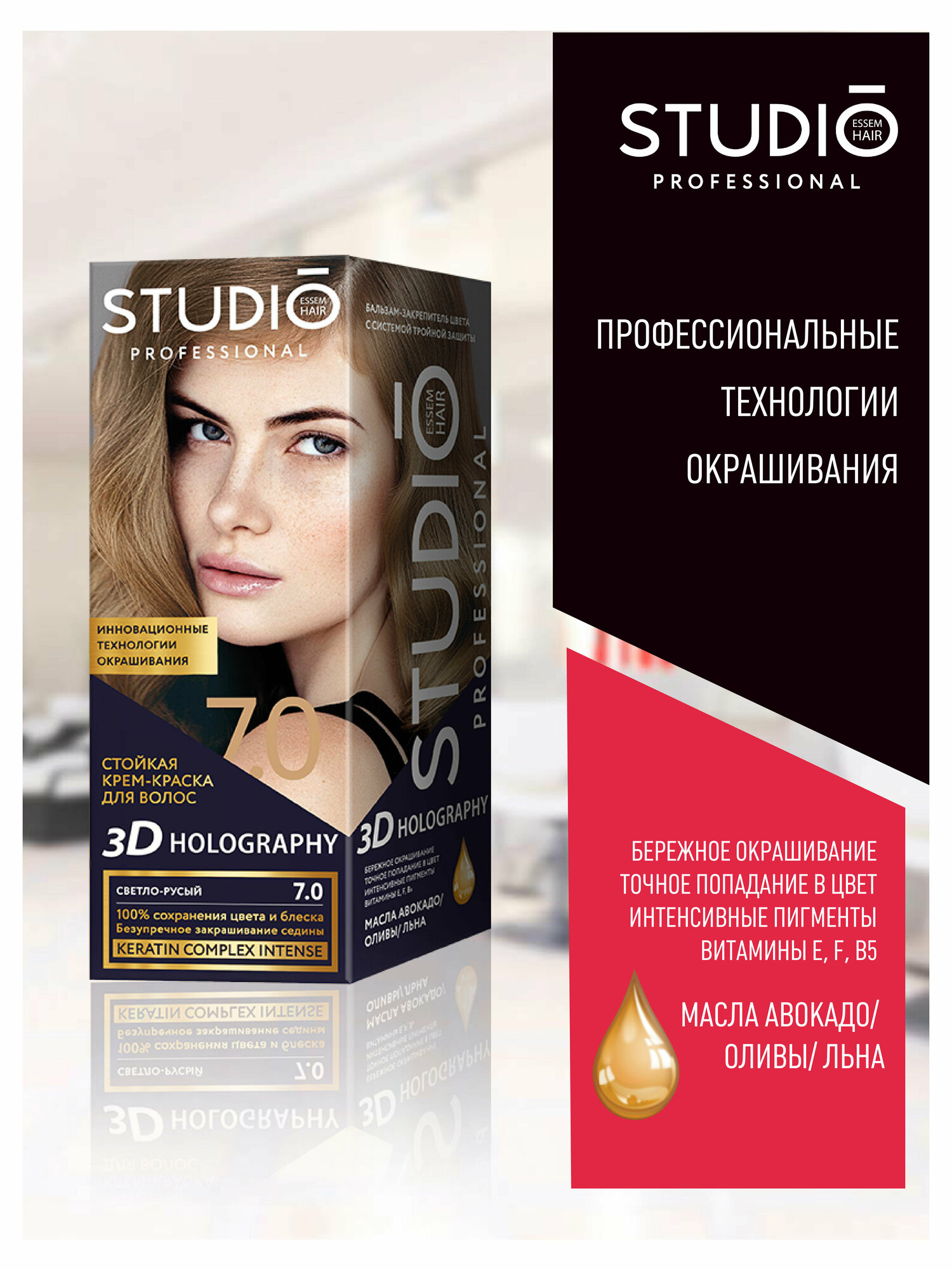 Светло-русый цвет волос сделает Ваш образ нежным и утонченным! Невероятный блеск, стойкость цвета и максимальное закрашивание седины! Профессиональная формула с биомаслами авокадо, оливы и льна обеспечивает стойкое окрашивание с минимальным агрессивным воздействием на волосы. Цвет долго держится, а волосы не теряют свою упругость и натуральный блеск. Специальный кератиновый комплекс восстанавливает внутренние белковые связи, корректирует видимые признаки повреждения волос, возвращает волосам эластичность и жизненные силы. Стойкая крем-краска STUDIO PROFESSIONAL не течет, легко наносится, равномерно распределяется и обеспечивает профессиональный результат как после салонного окрашивания.