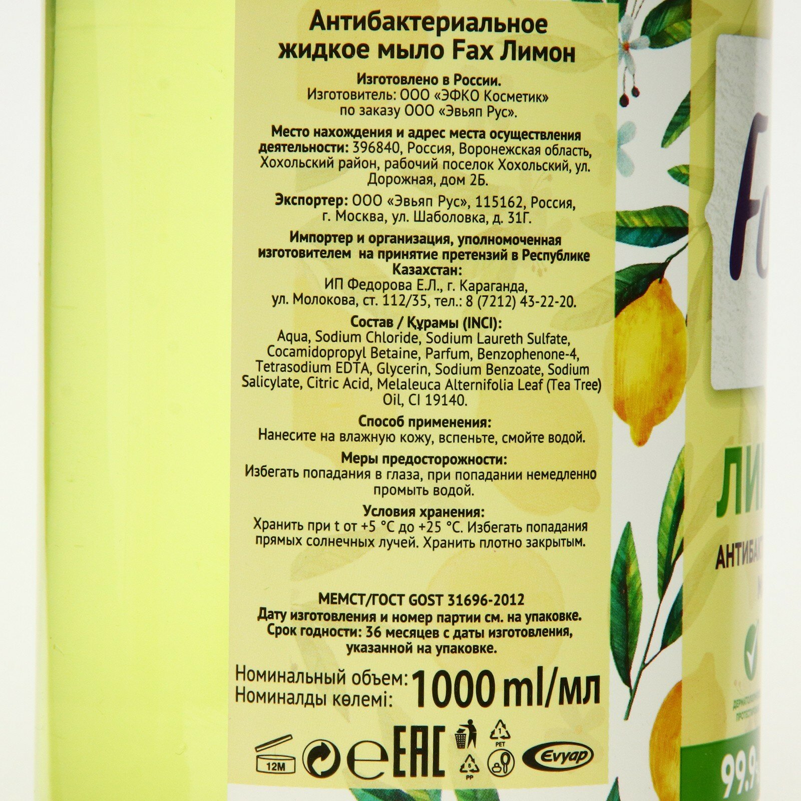 Мыло жидкое Fax Антибактериальное Лимон 1 л