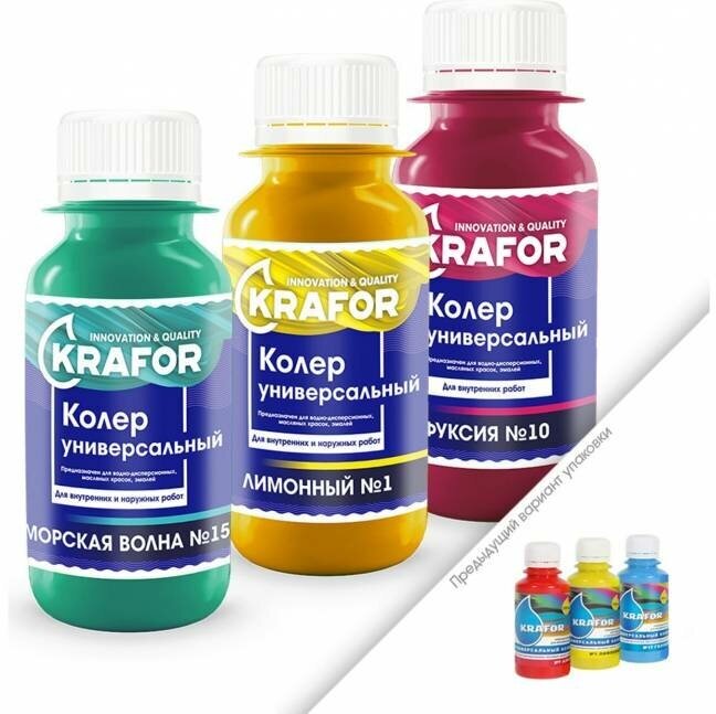 Универсальный колер предназначен для колеровки эмалей, водно-дисперсионных и масляных красок, сухих строительных смесей. Широкая цветовая гамма. Может применяться как внутри, так и снаружи помещений. Универсальный колер выпускается в 22 основных цветах. На практике можно получить неограниченное количество цветов и оттенков, так как все колера совместимы между собой. Материал легок в использовании. Колер предназначен для колеровки эмалей, водно-дисперсионных и масляных красок, сухих строительных смесей, растворов, побелочных и других составов.