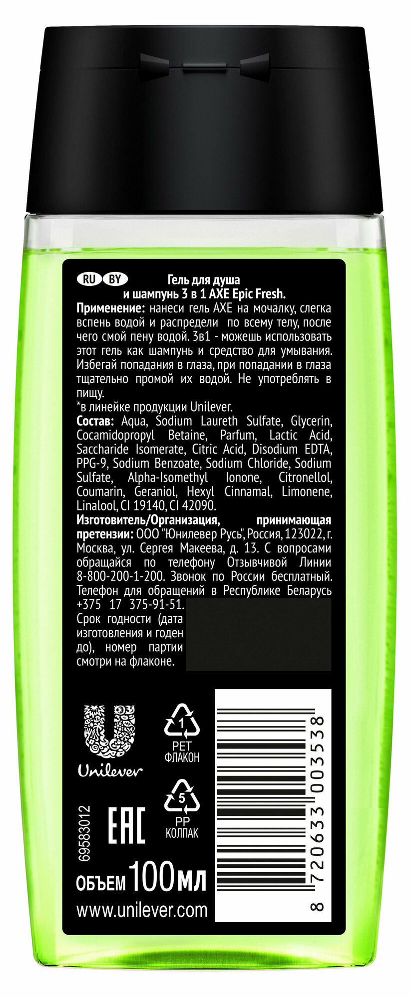 Сервис сравнения цен СкидкаГИД предлагает сравнить цены на товар «Гель для душа и шампунь для волос Axe Epic Fresh 3 в 1 c пребиотиками и увлажняющими ингредиентами 100 мл»