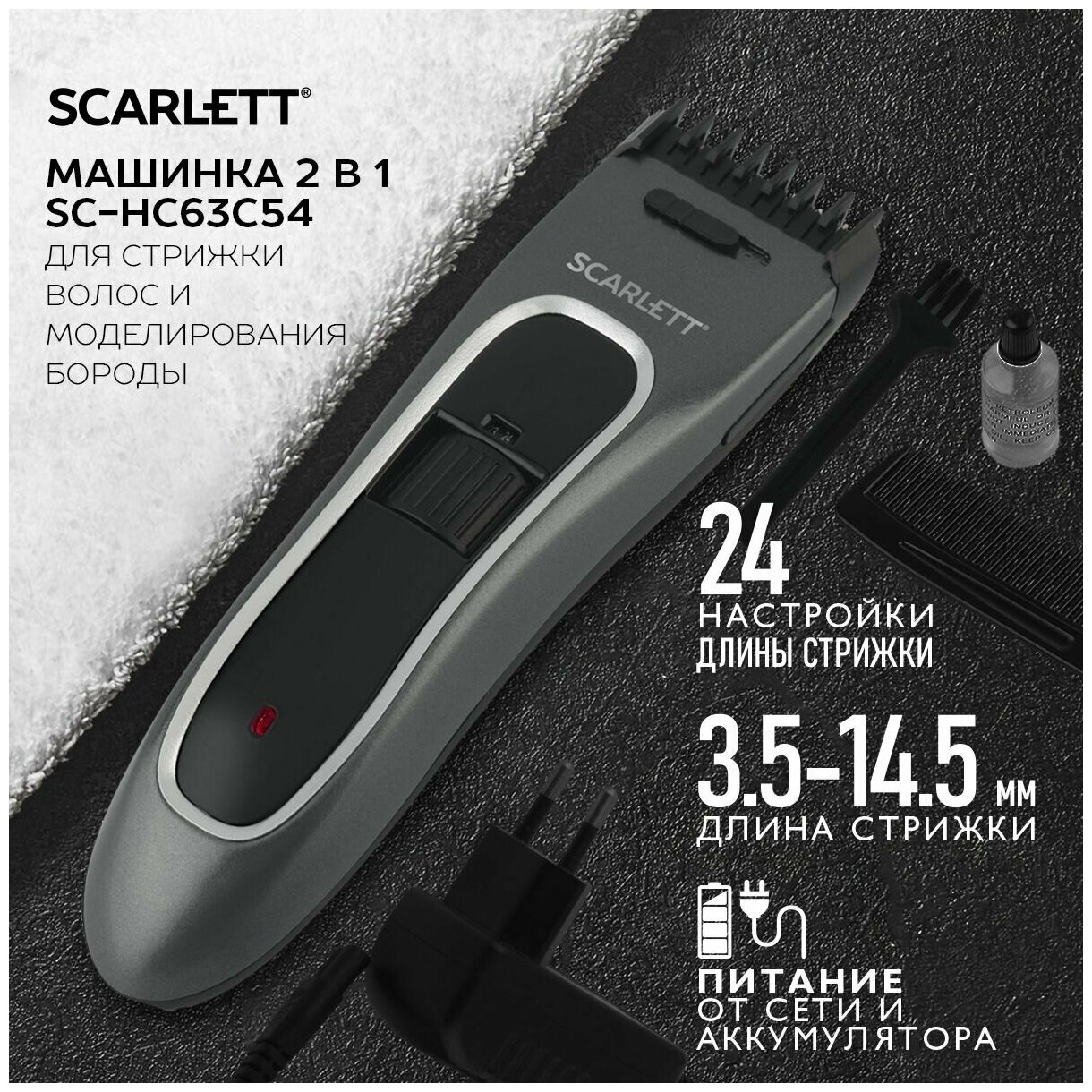 | Наименование модели | Машинка для стрижки волос Scarlett SC-HC63C54 |